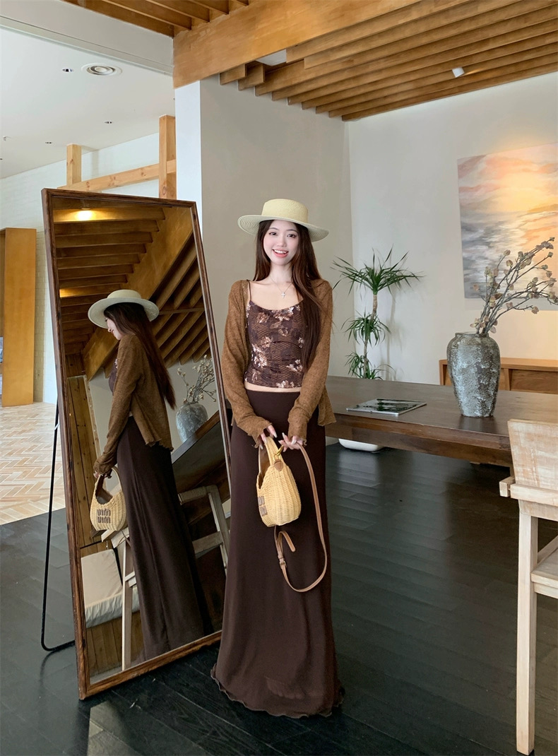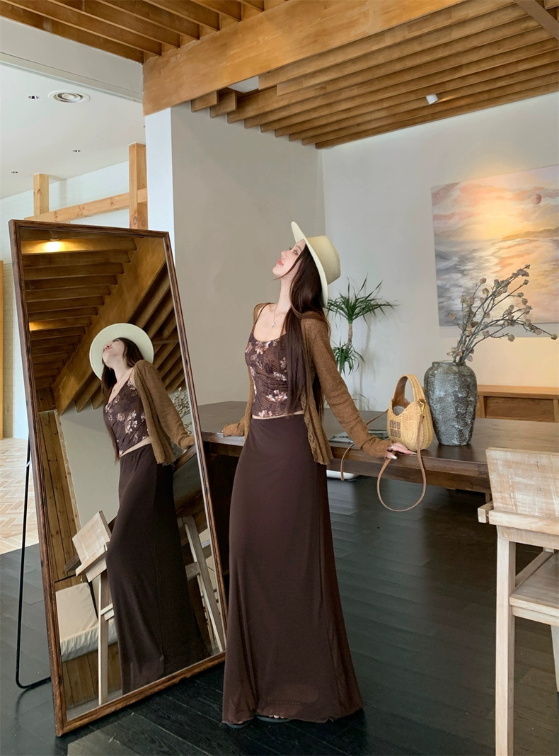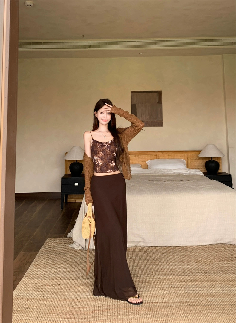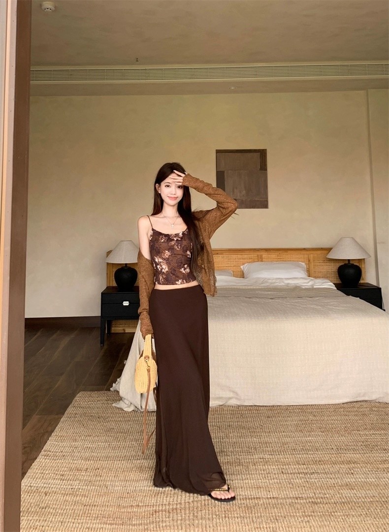 Áo 2 dây phối chân váy dài kèm áo khoác mỏng phong cách nữ tính pha chút quyến rũ, phù hợp đi chơi, du lịch...