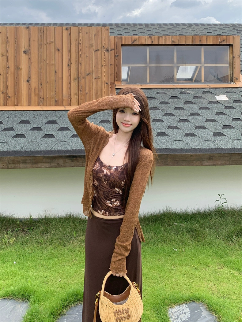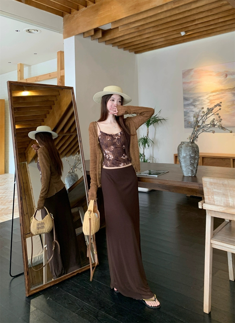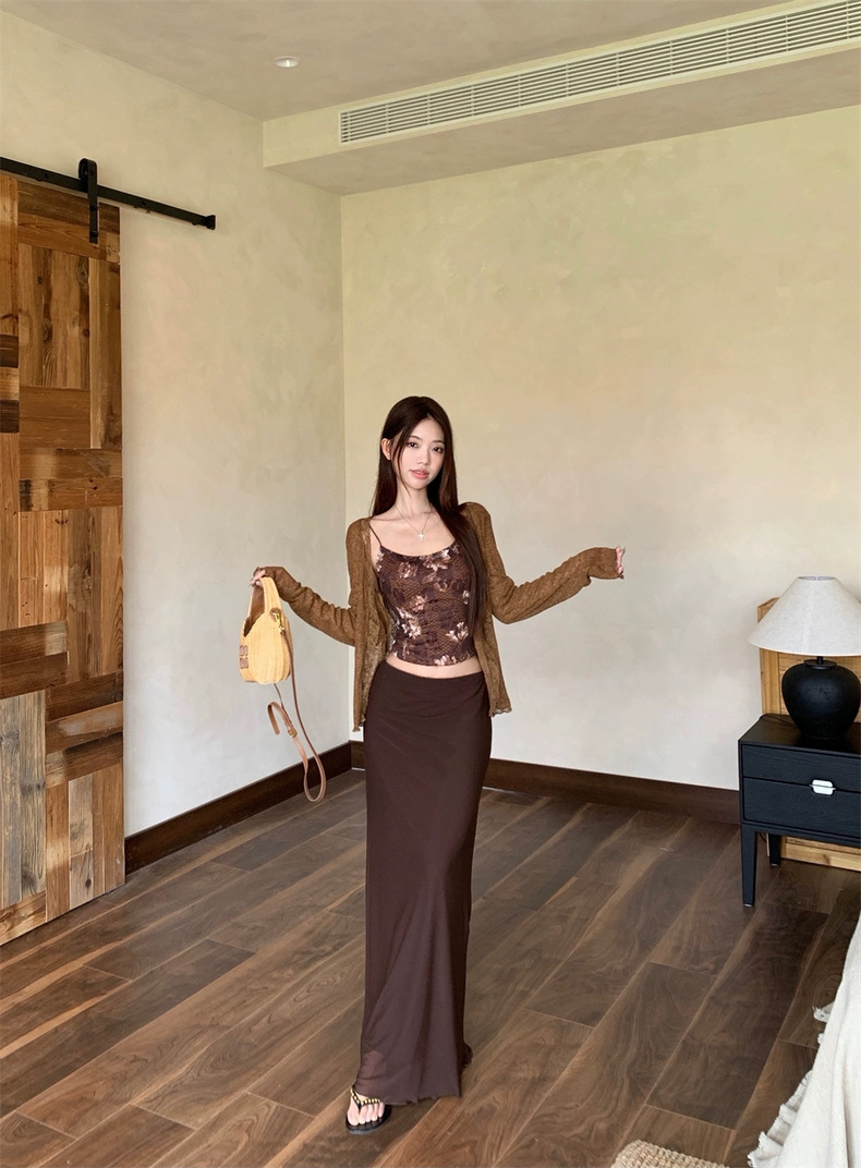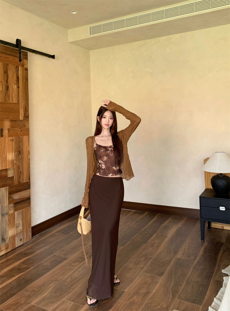 Áo 2 dây phối chân váy dài kèm áo khoác mỏng phong cách nữ tính pha chút quyến rũ, phù hợp đi chơi, du lịch...