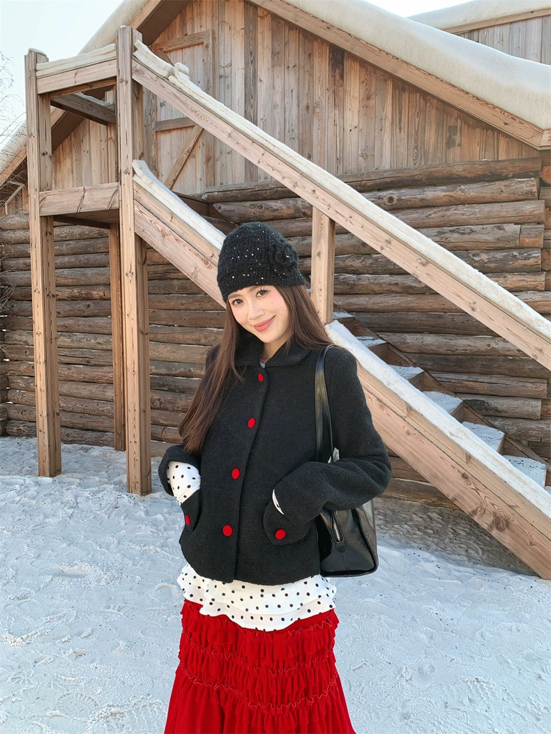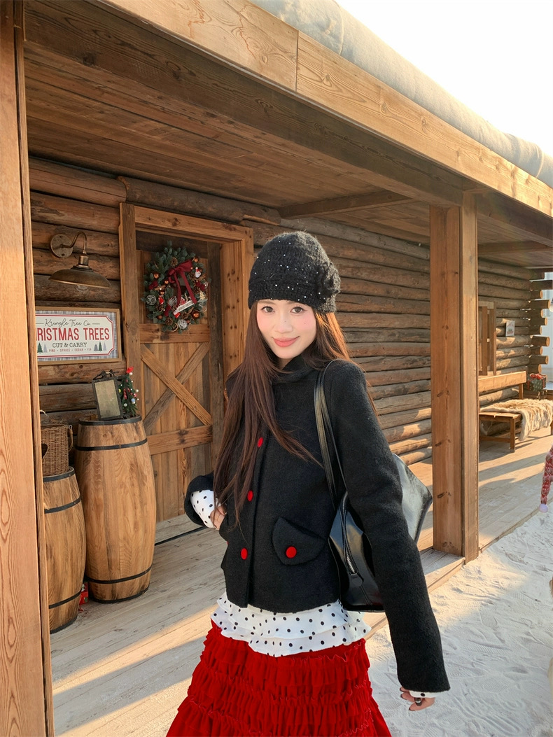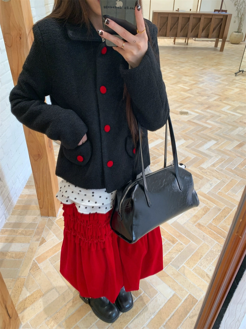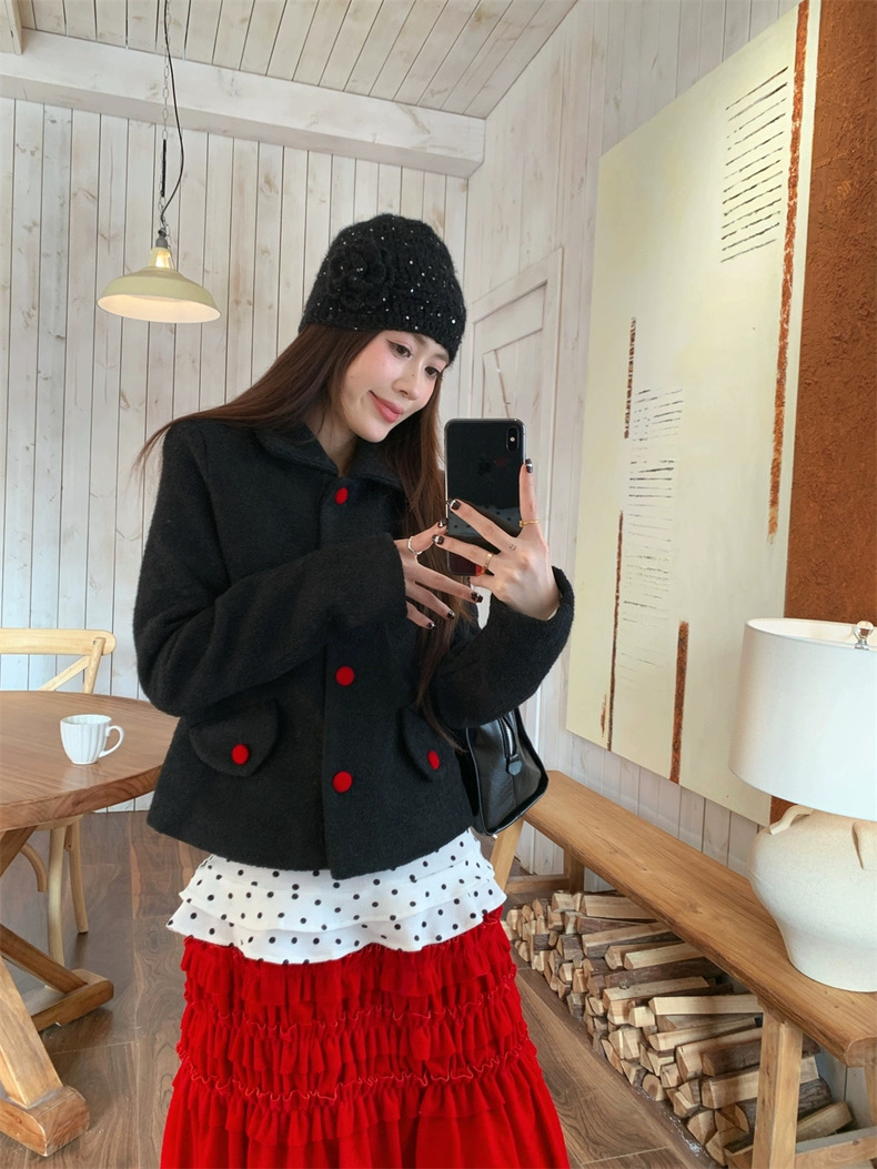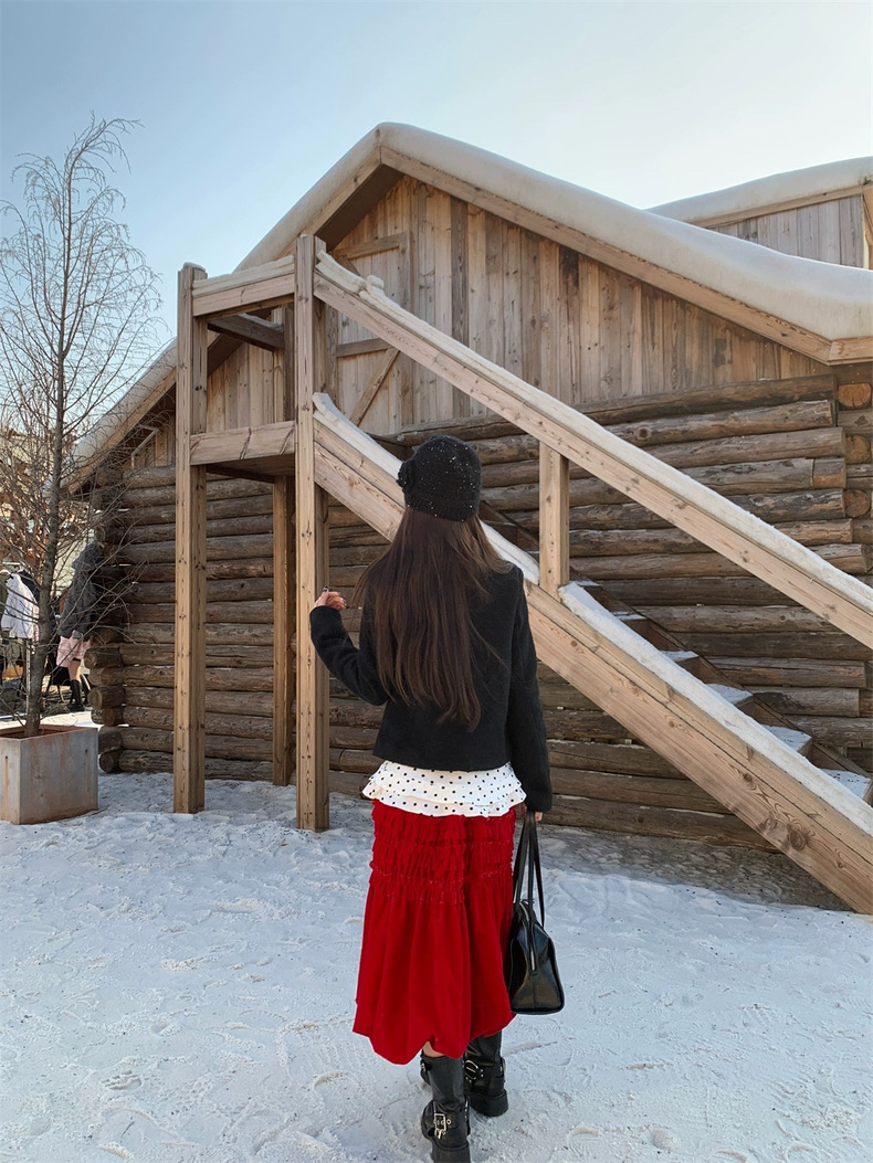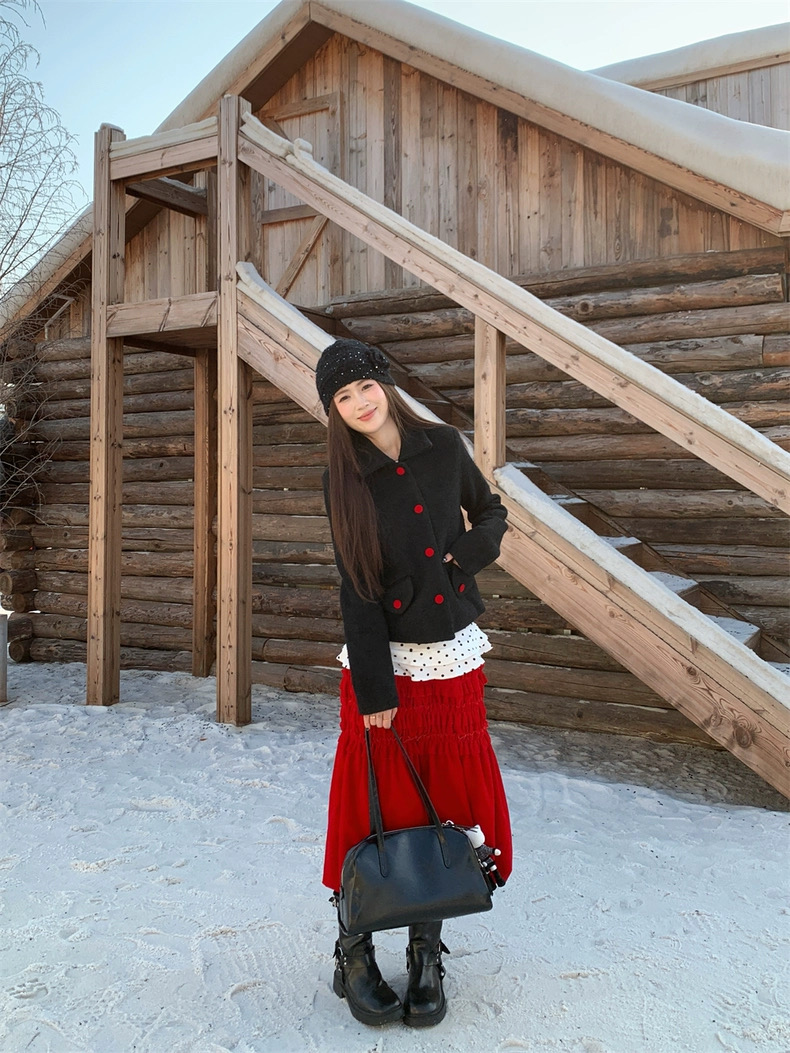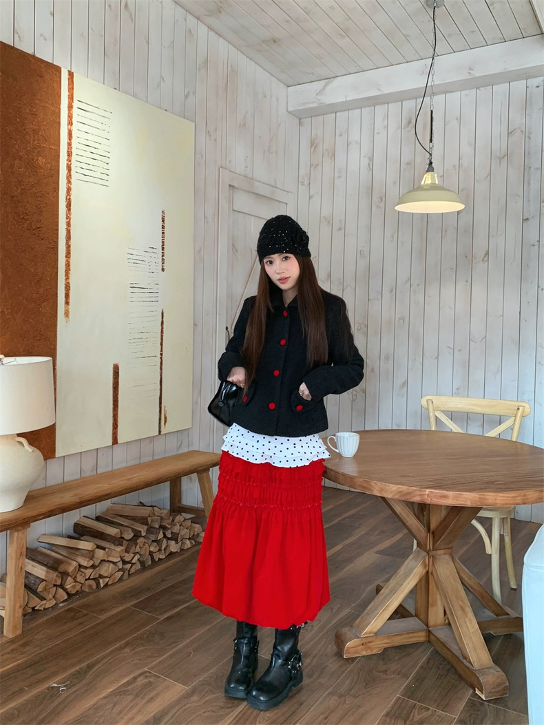Áo khoác dáng ngắn phối chân váy tầng phong cách cá tính pha tiểu thư, nổi bật với sự kết hợp màu sắc ấn tượng....