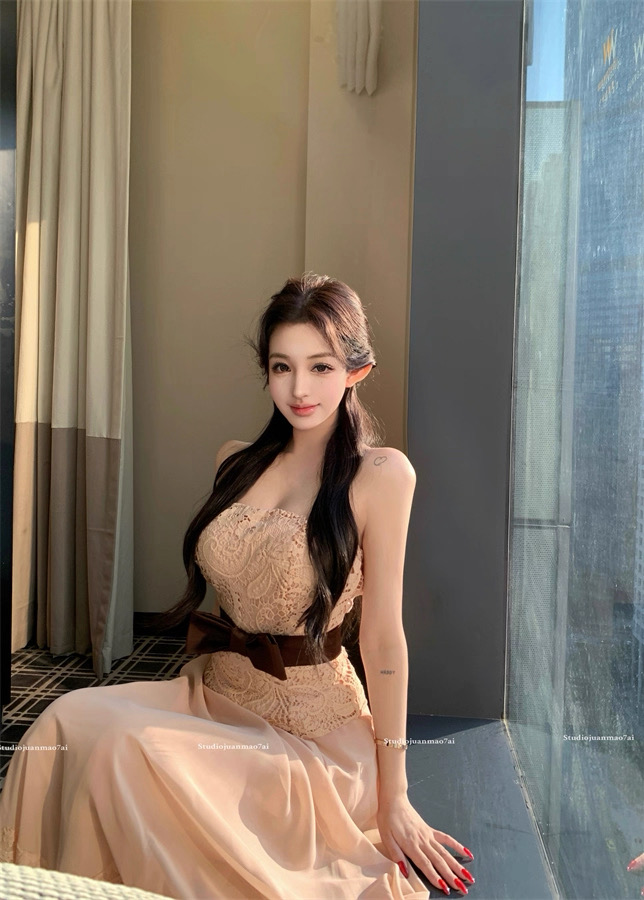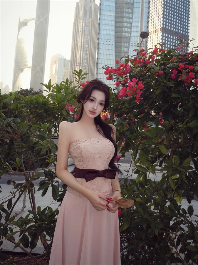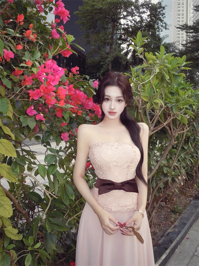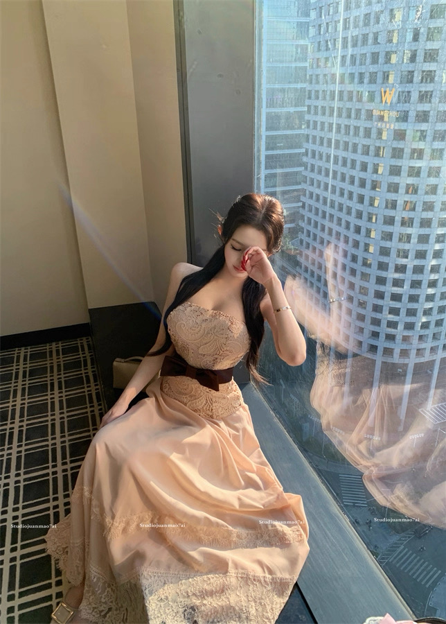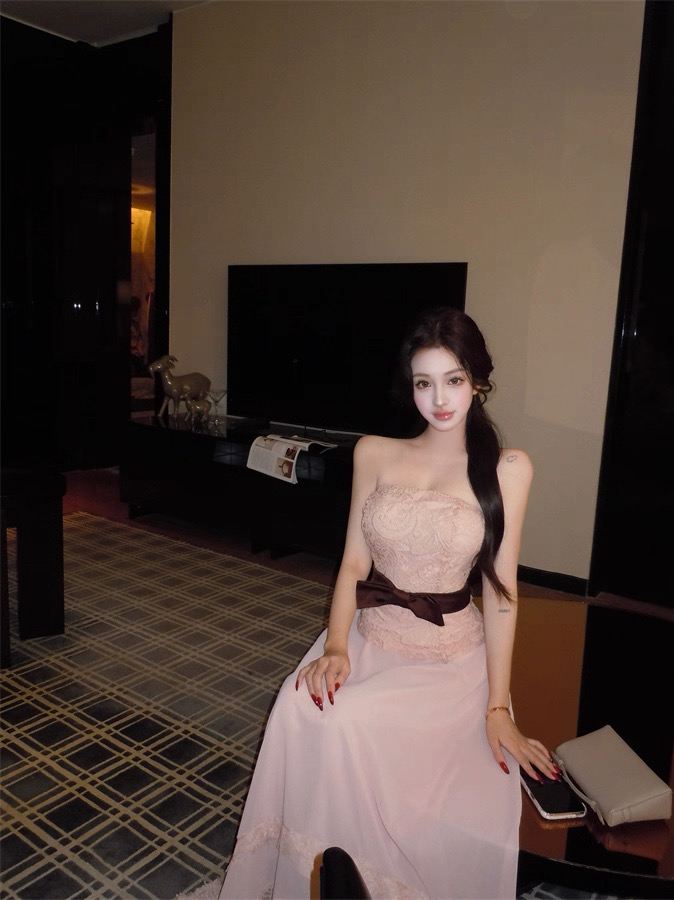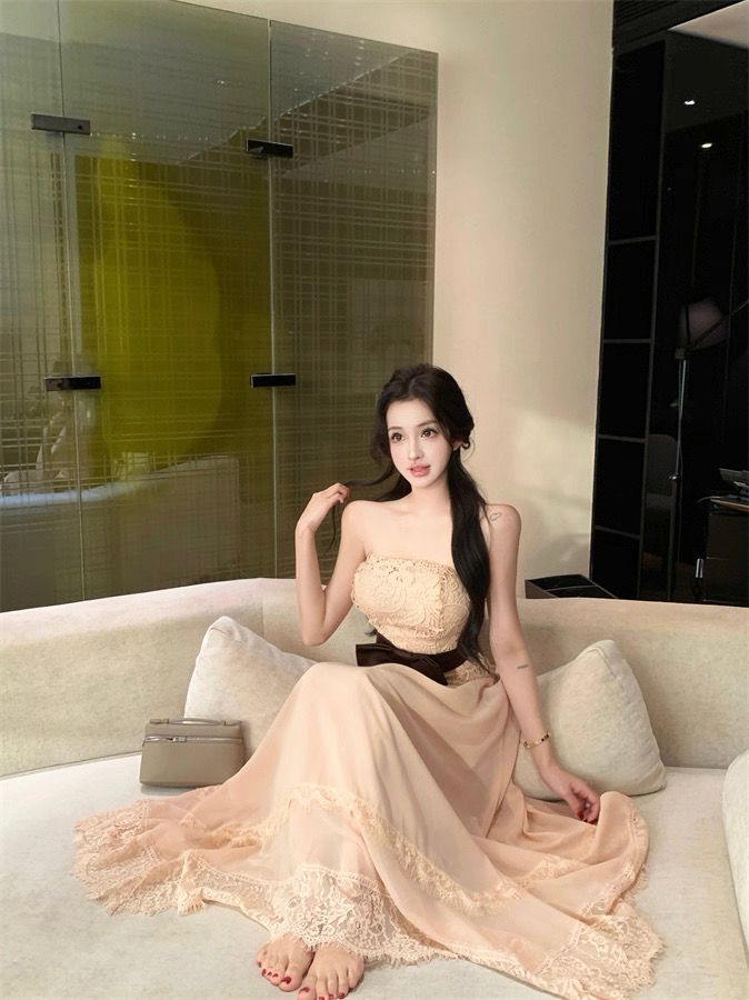 Áo ren chân váy dài thắt nơ eo tiểu thư_V33