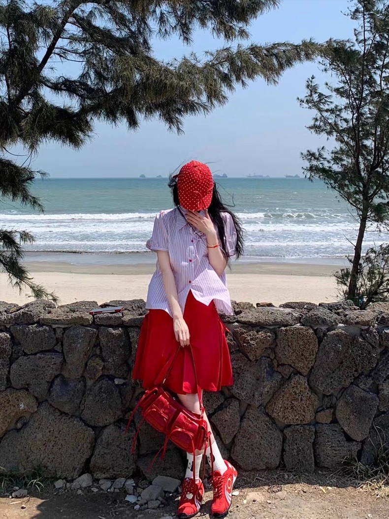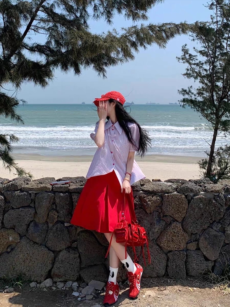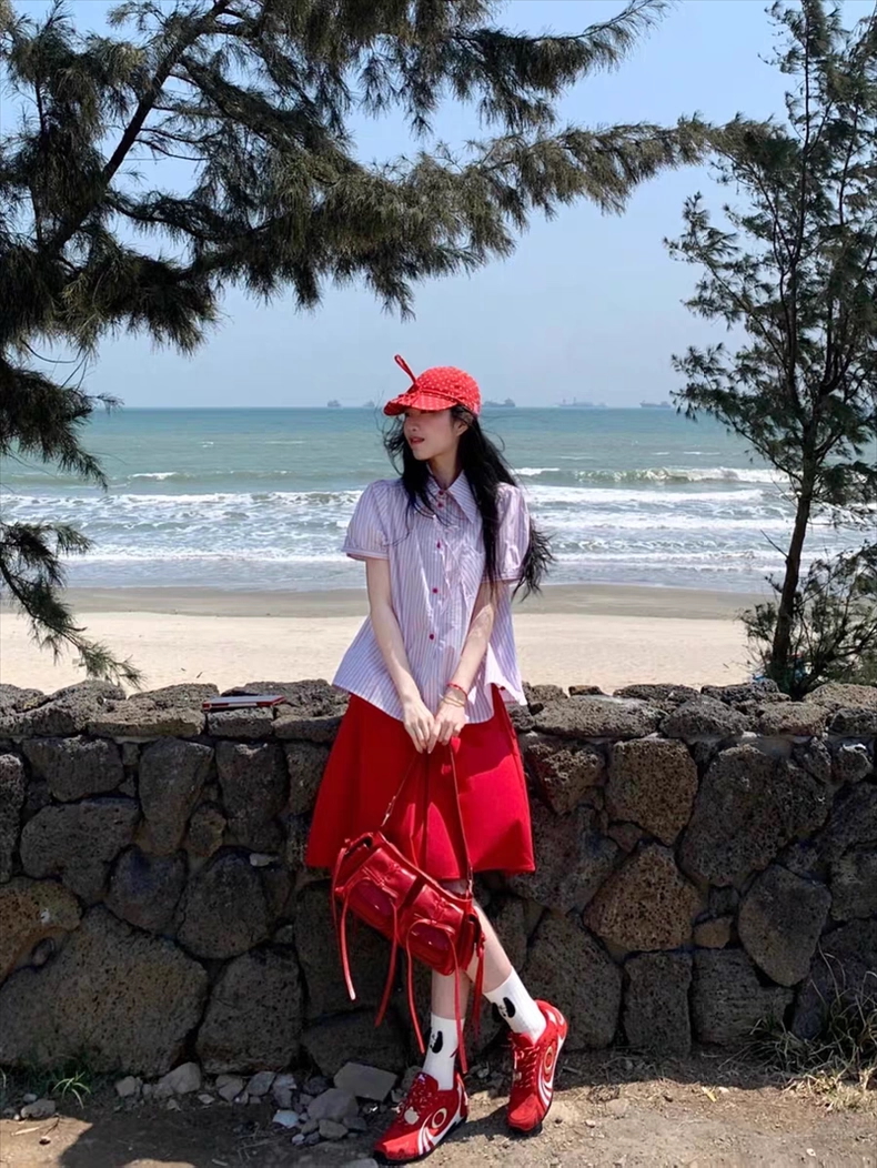 Áo sơ mi tay ngắn phối chân váy chữ A phong cách trẻ trung, nữ tính, phù hợp đi chơi, du lịch hoặc dạo phố....