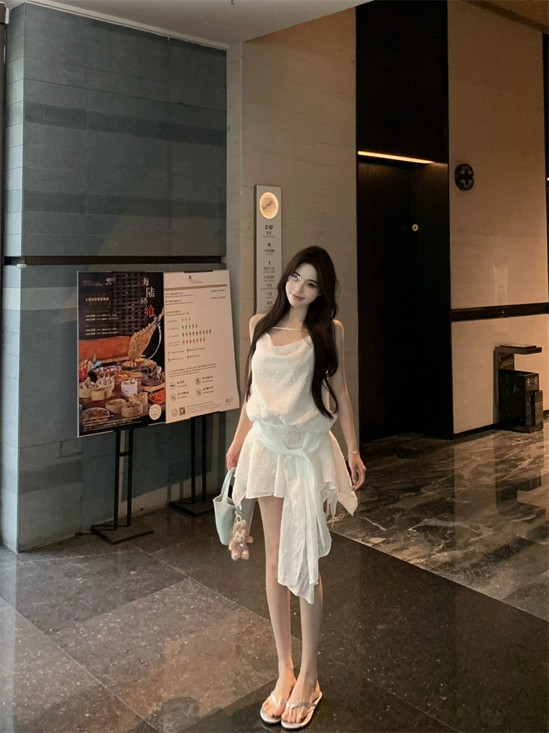Đầm 2 dây ren dáng ngắn bay nhẹ nữ tính_Y04