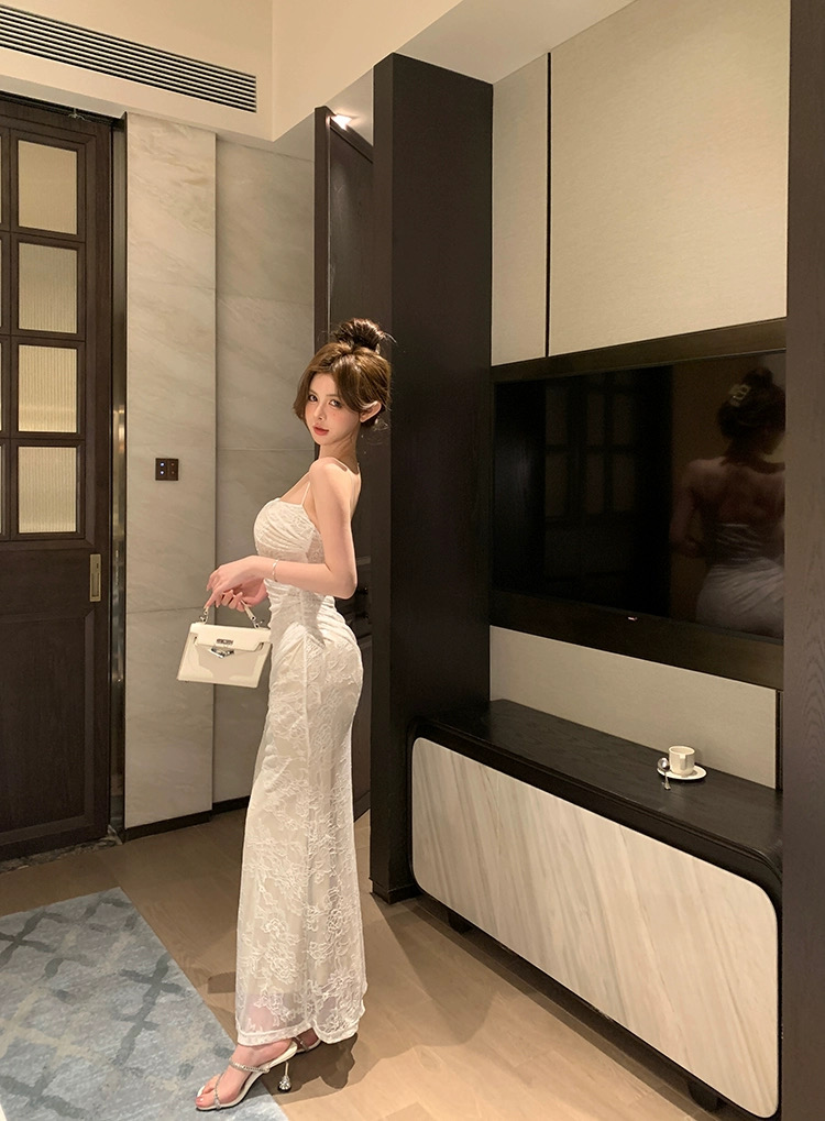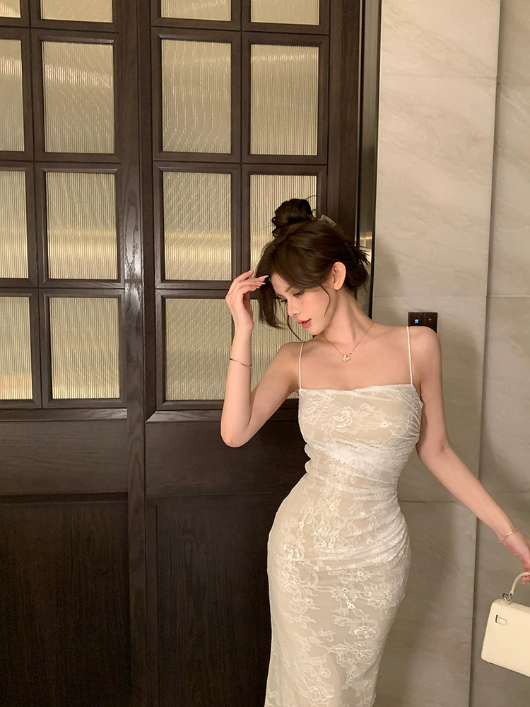 Đầm body ren dài 2 dây dáng ôm quyến rũ_Y05
