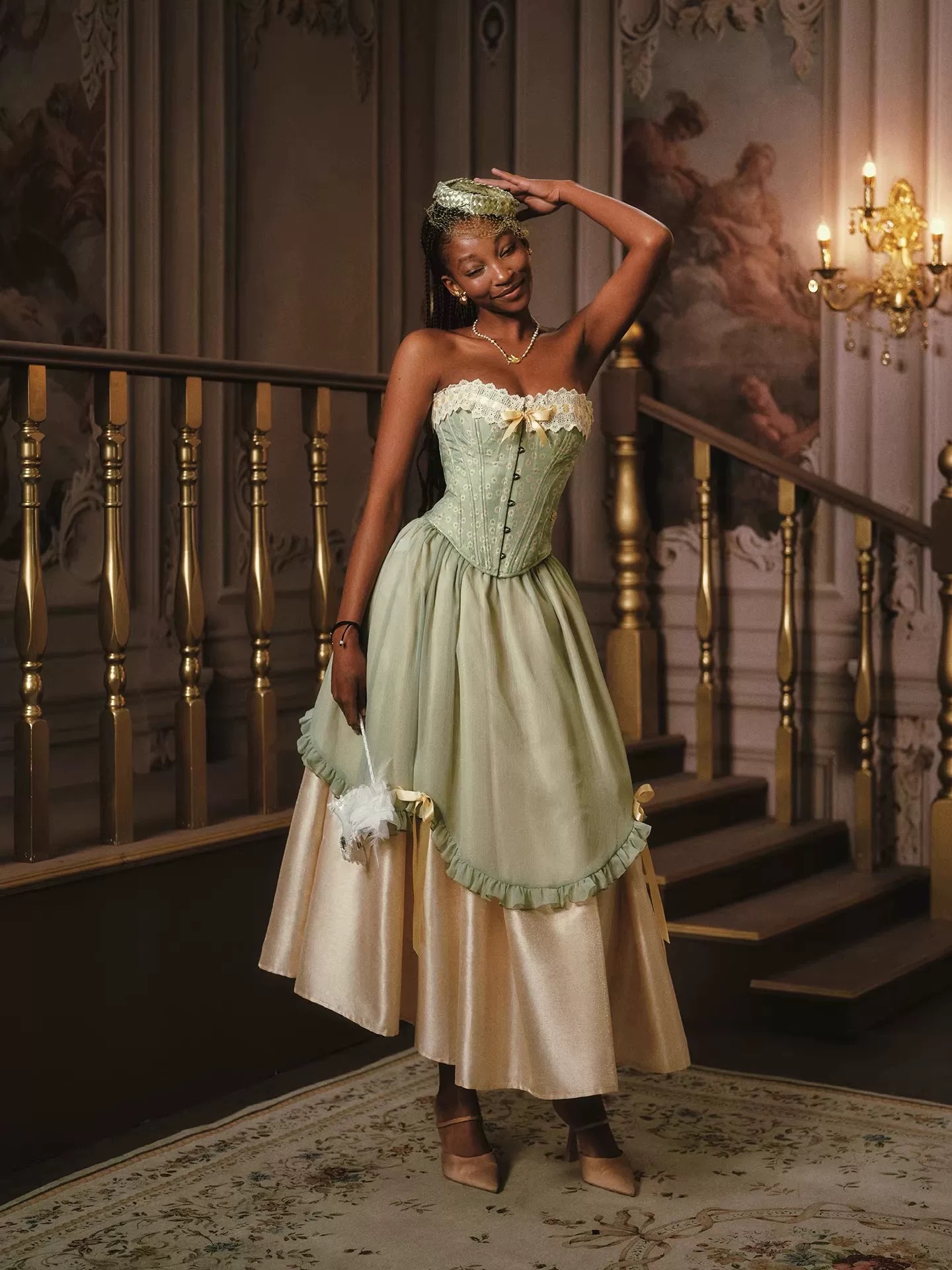Thiết kế mang phong cách cổ điển châu Âu với gam xanh olive thanh lịch kết hợp chi tiết ren nhẹ nhàng. Phần corset ôm...