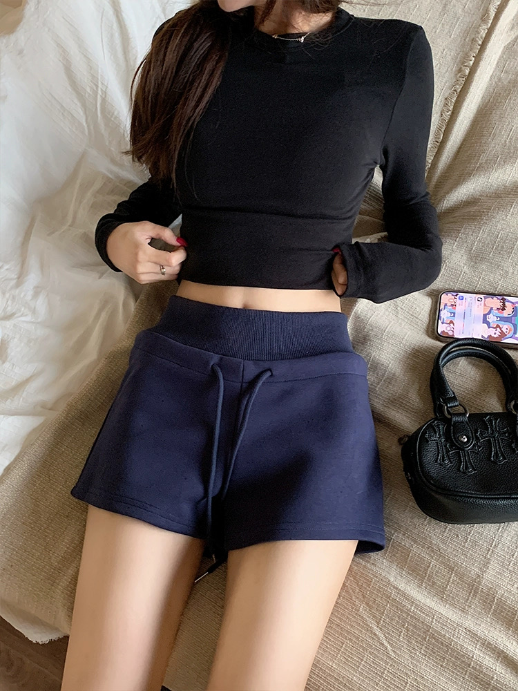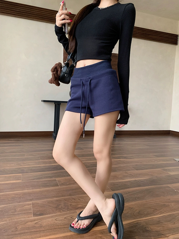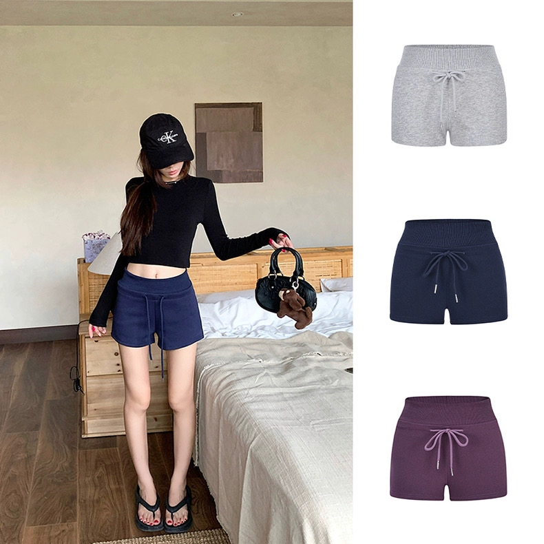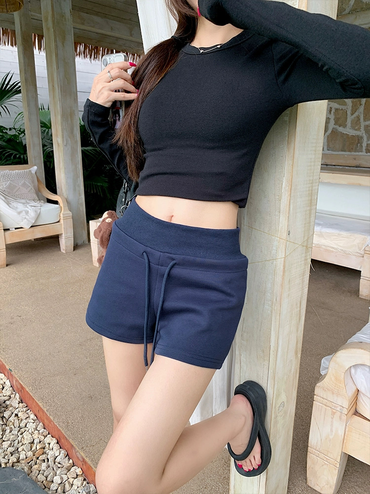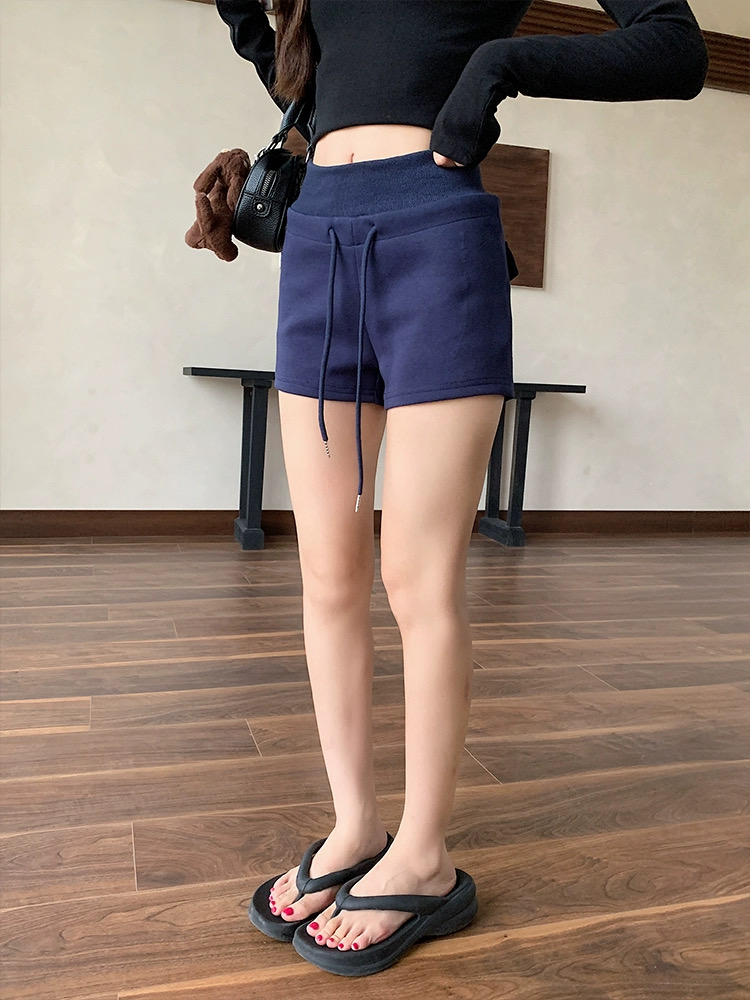 Quần short nữ lưng cao dây rút chất cotton co giãn_Q01