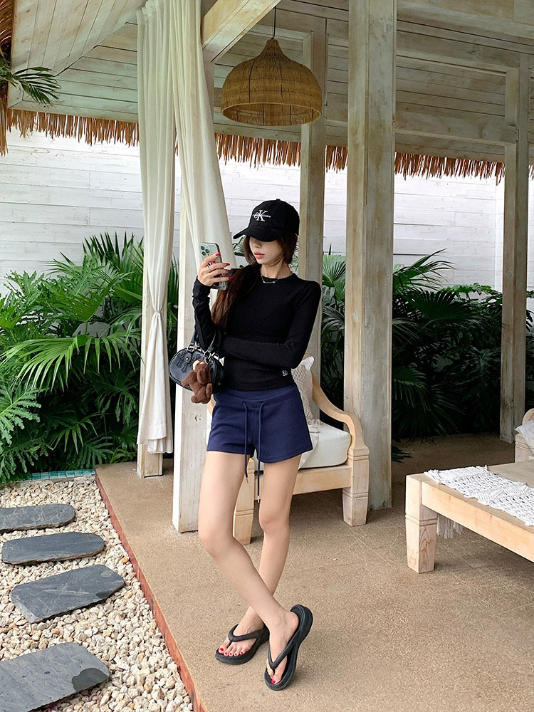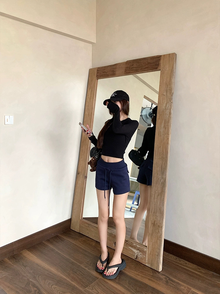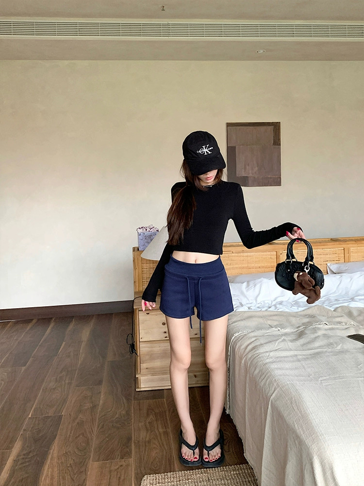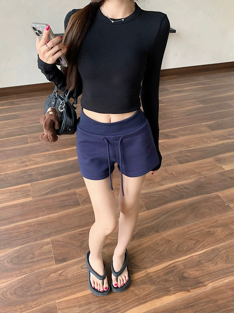 Quần short nữ lưng cao dây rút chất cotton co giãn_Q01
