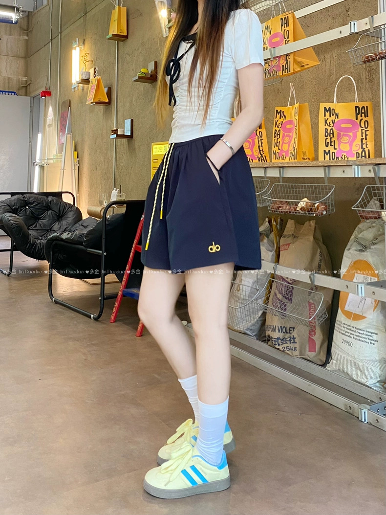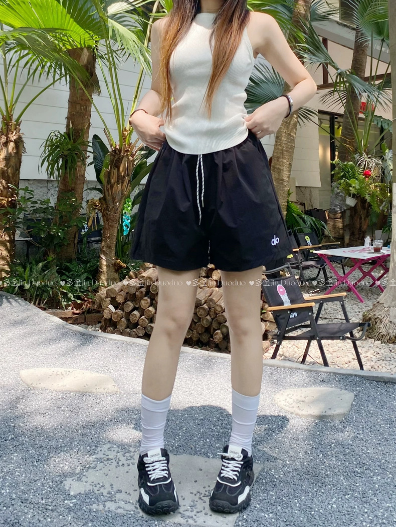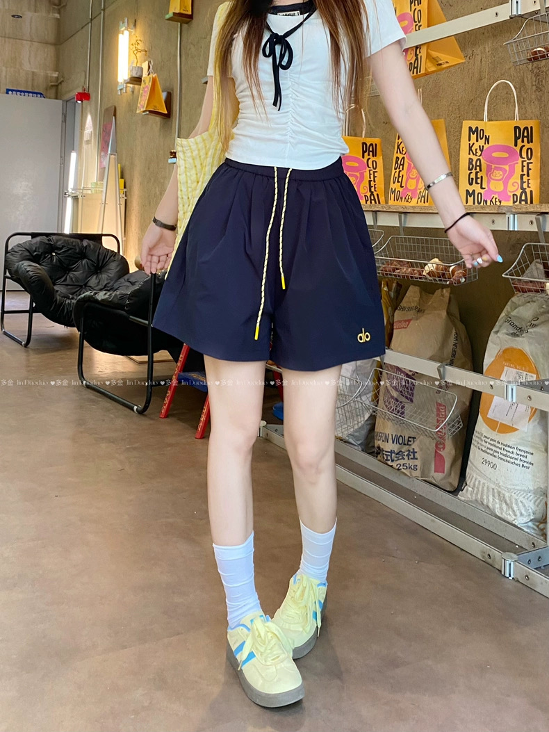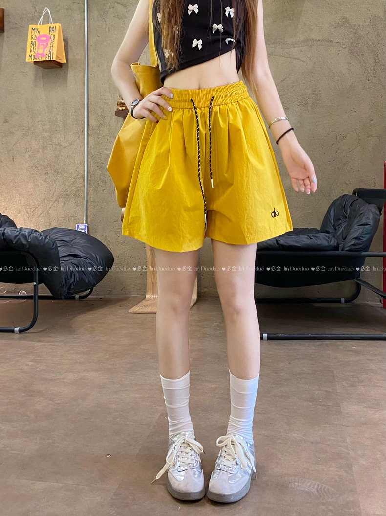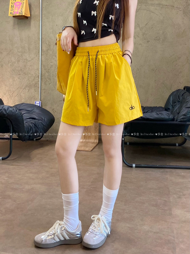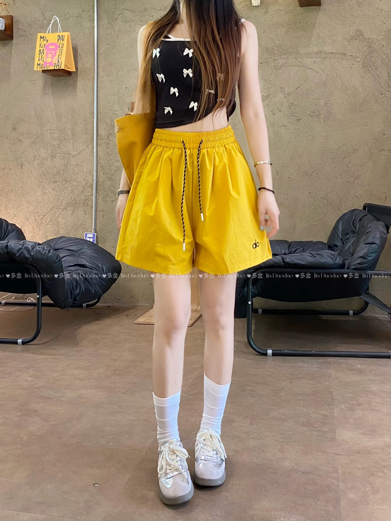 Quần short nữ lưng cao dây rút phong cách năng động, thiết kế form rộng thoải mái phù hợp mặc nhà, đi chơi hoặc tập...