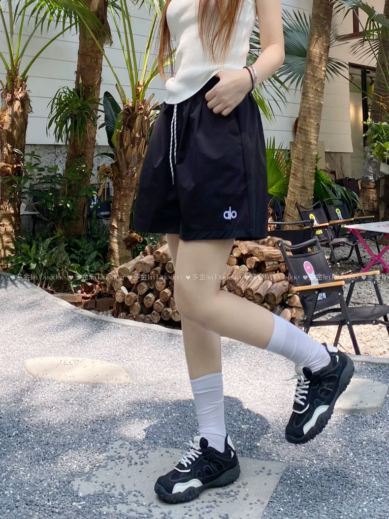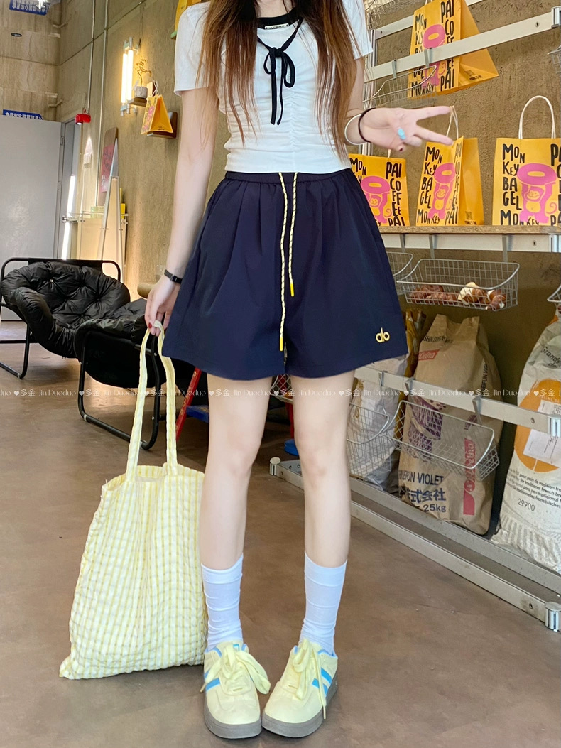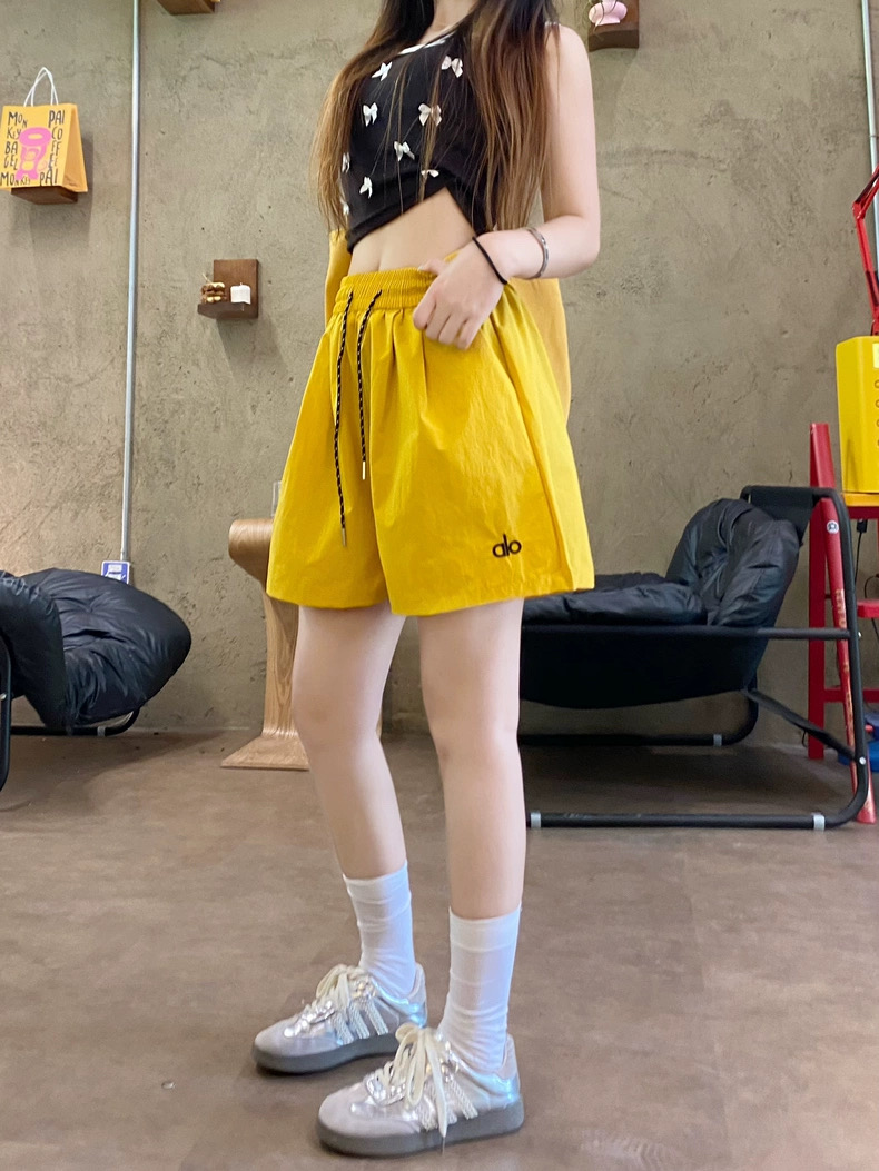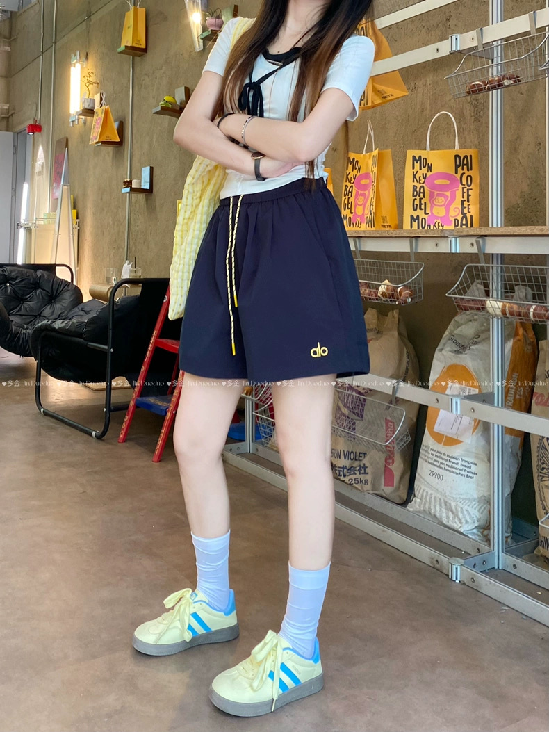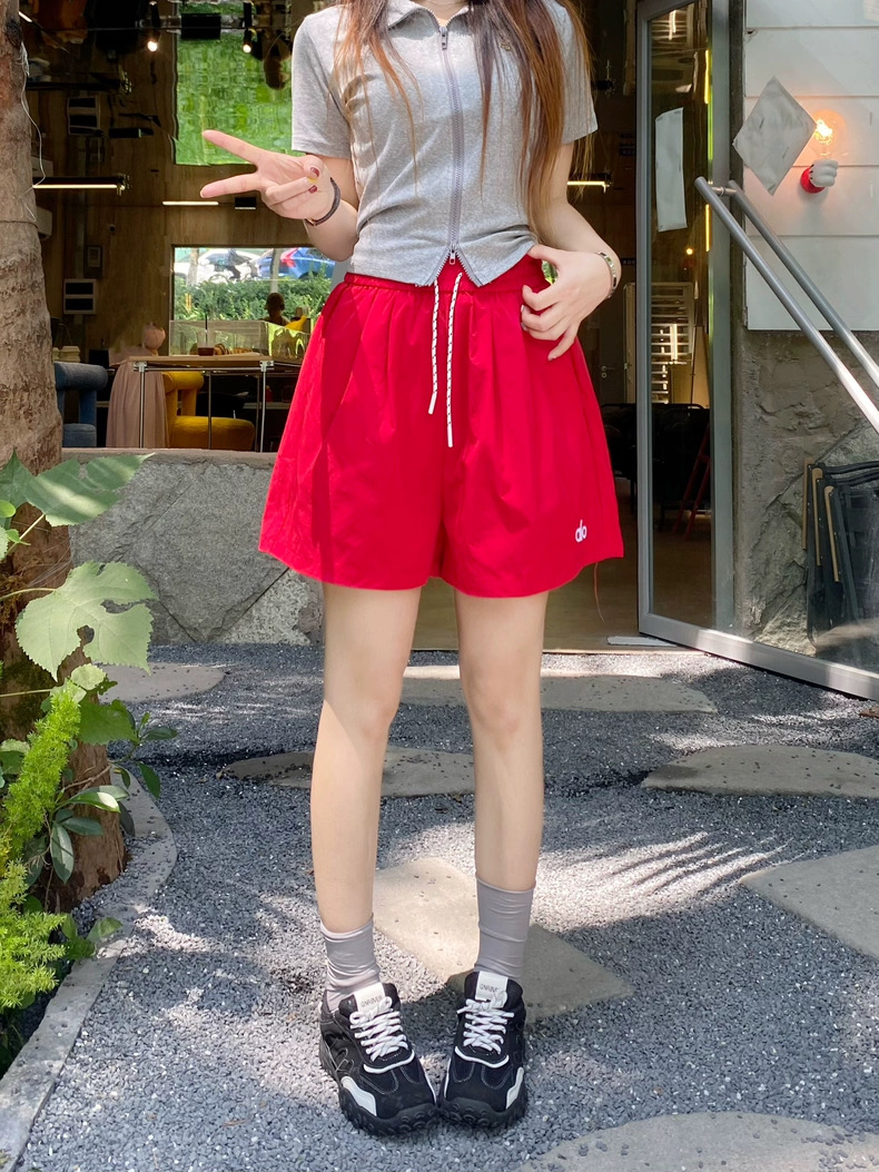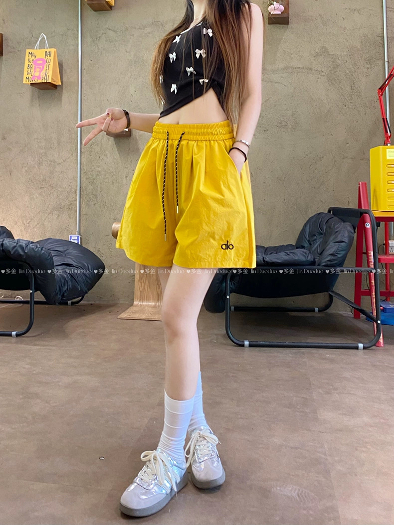 Quần short nữ lưng cao dây rút phong cách năng động, thiết kế form rộng thoải mái phù hợp mặc nhà, đi chơi hoặc tập...