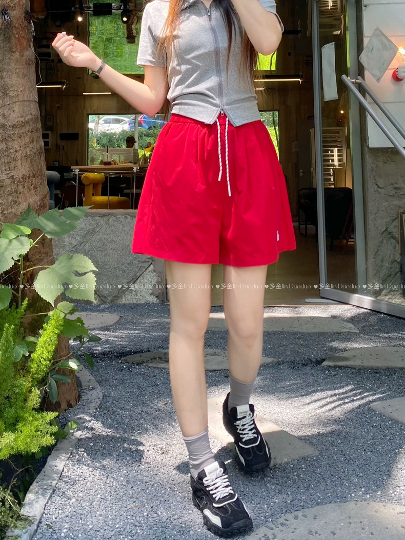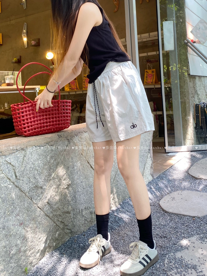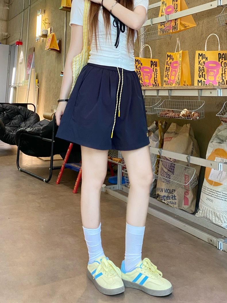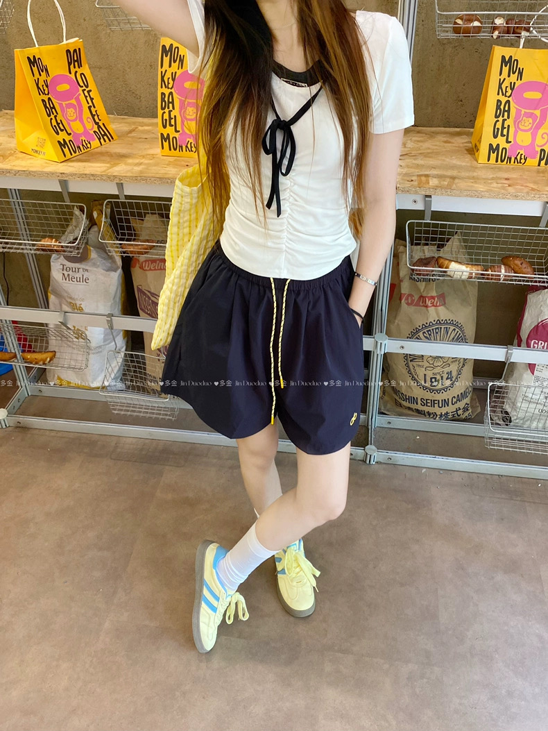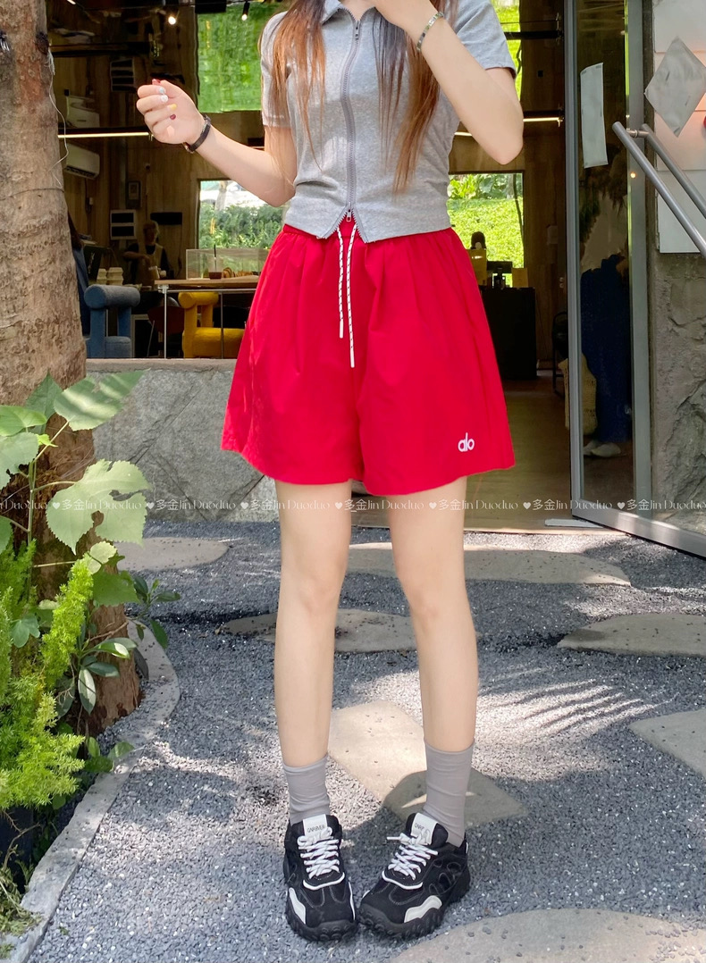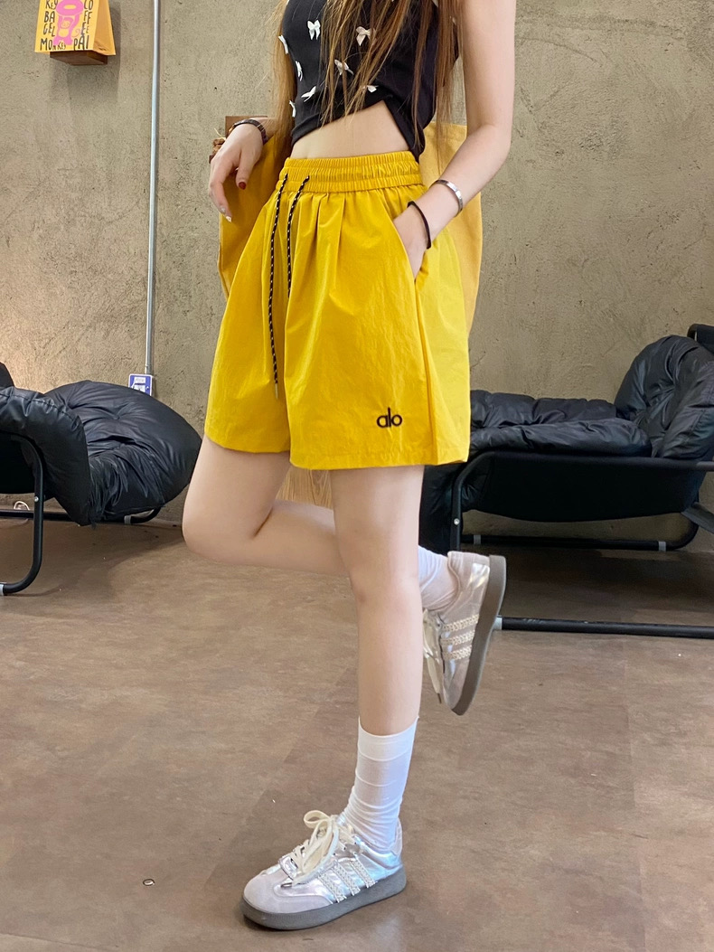 Quần short nữ lưng cao dây rút phong cách năng động, thiết kế form rộng thoải mái phù hợp mặc nhà, đi chơi hoặc tập...
