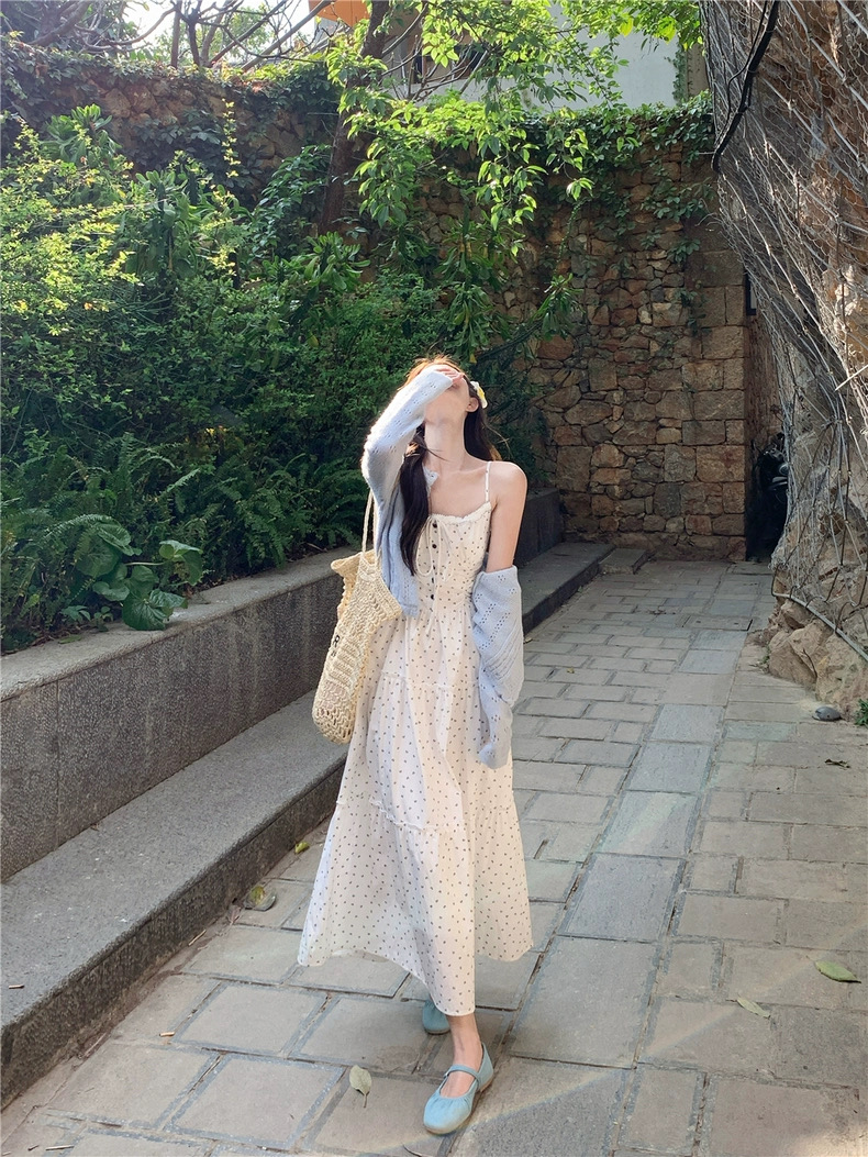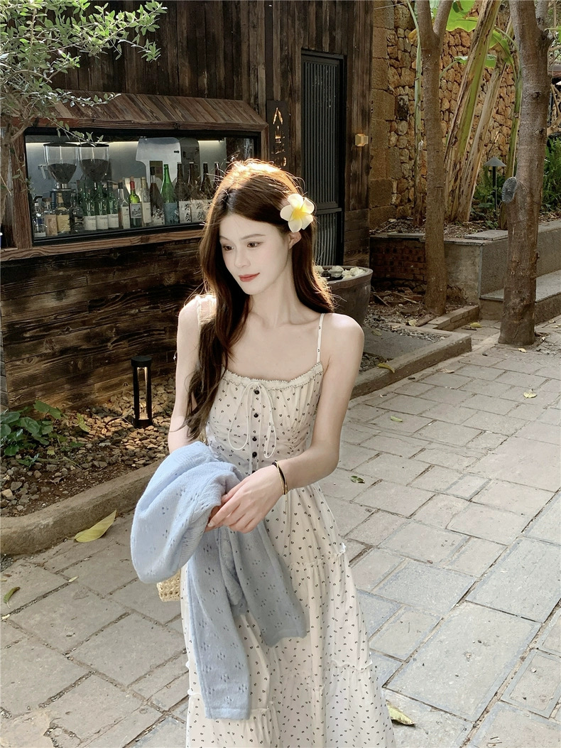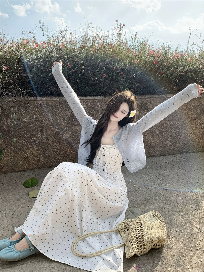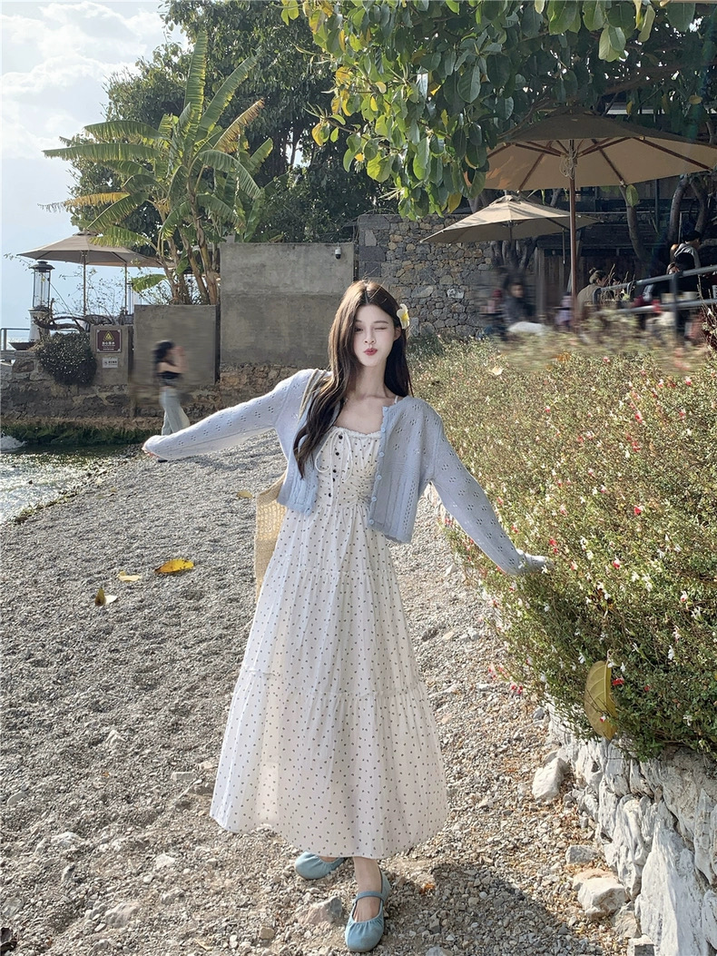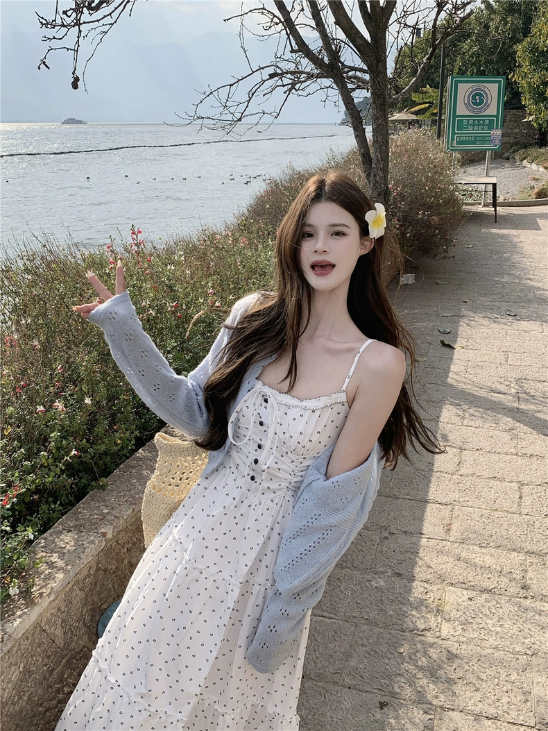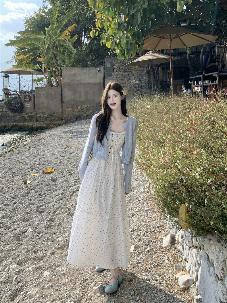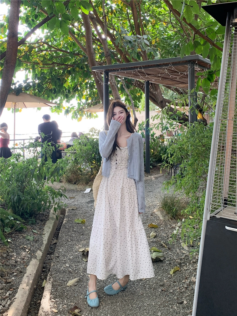 Set đồ mang phong cách nữ tính, nhẹ nhàng và vintage, gồm áo cardigan len mỏng phối cùng đầm maxi hoa nhí dáng dài. Thiết...