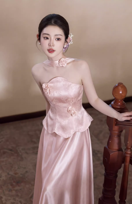 – Chi tiết: Dệt hoa, đính hoa nổi, dây buộc sau