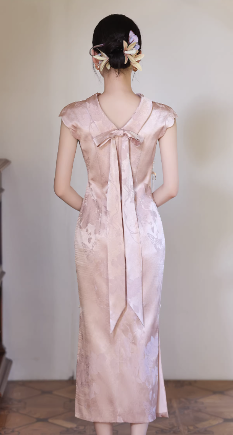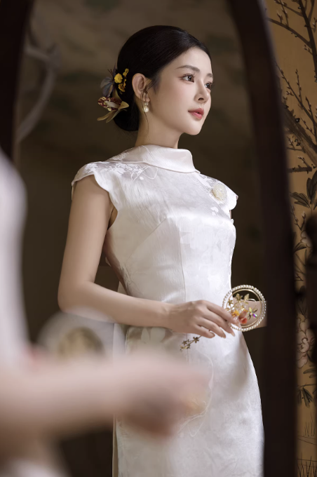 Sự kết hợp tinh tế giữa nét đẹp truyền thống và thiết kế hiện đại, chiếc sườn xám mang đến vẻ thanh lịch, dịu dàng nhưng vẫn vô cùng cuốn hút.