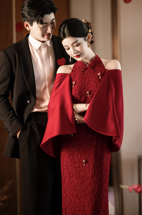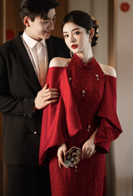 - Tông đỏ nổi bật, cực hợp mặc cưới hỏi