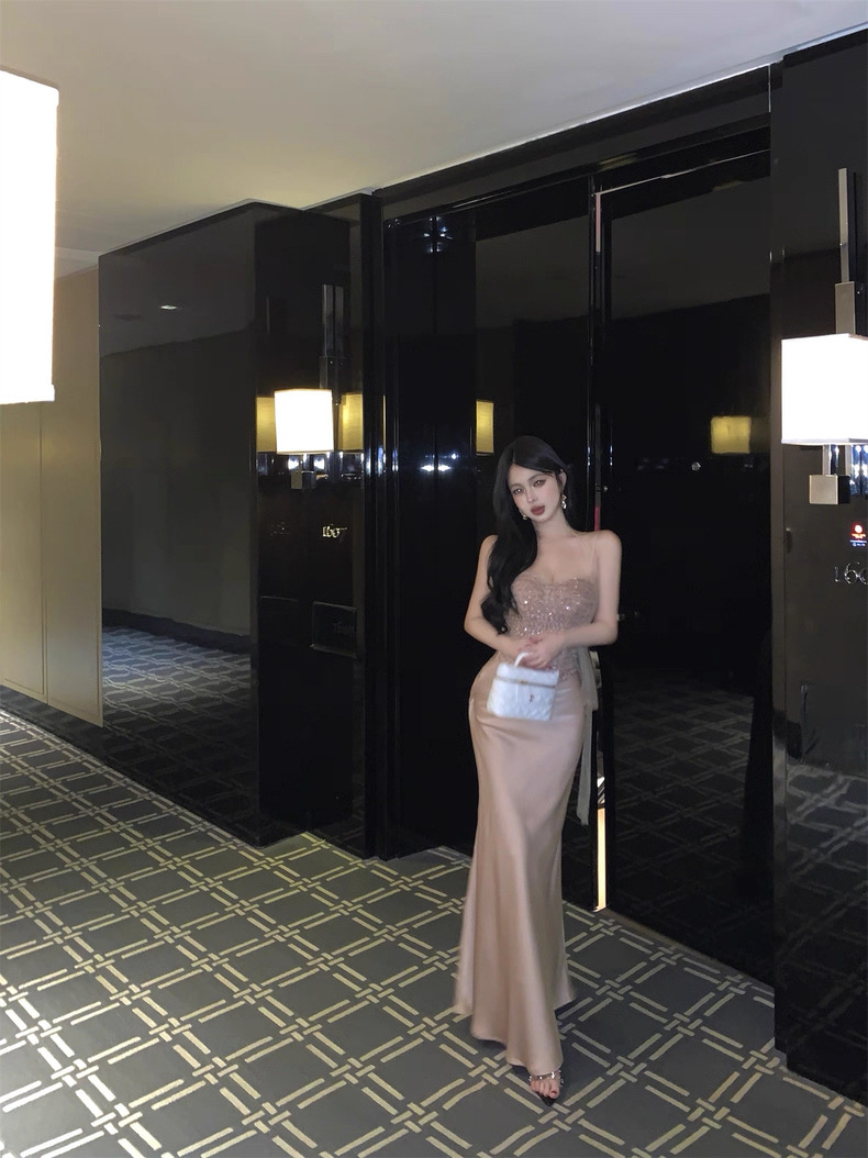 Váy body dài cúp ngực đính đá sang chảnh_V34