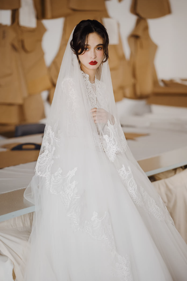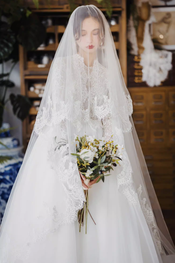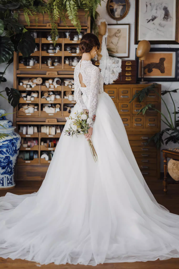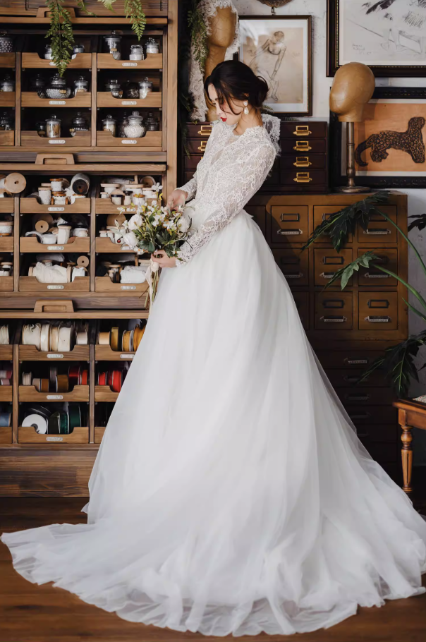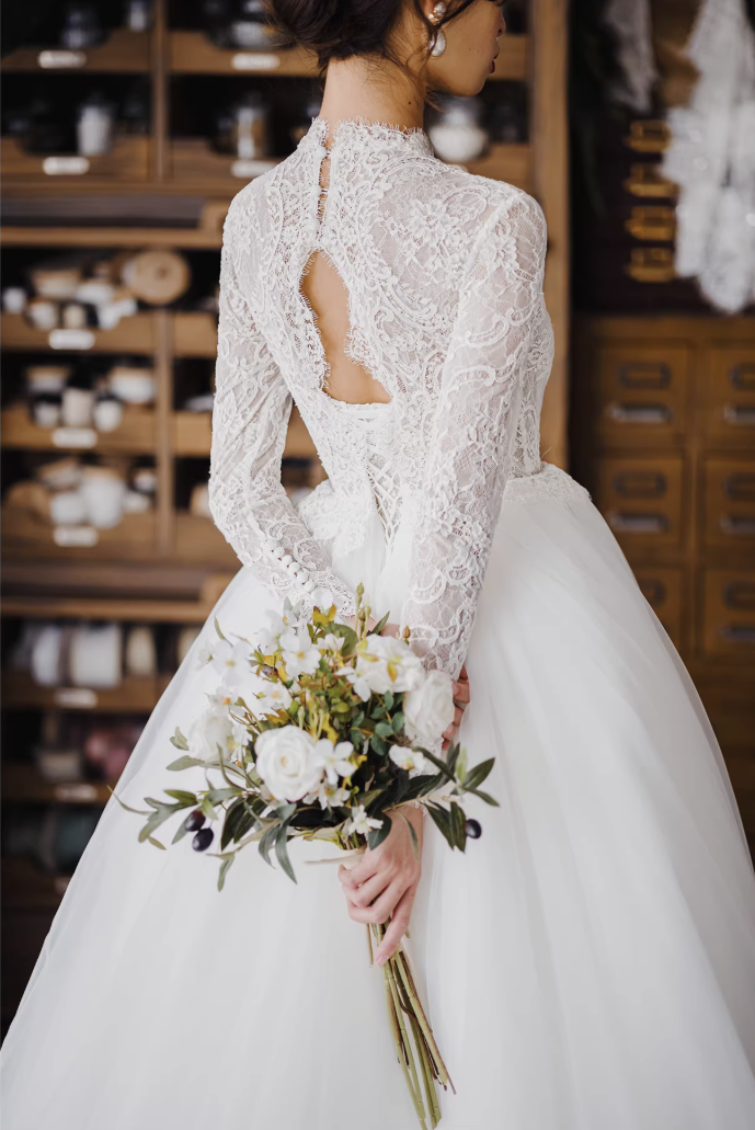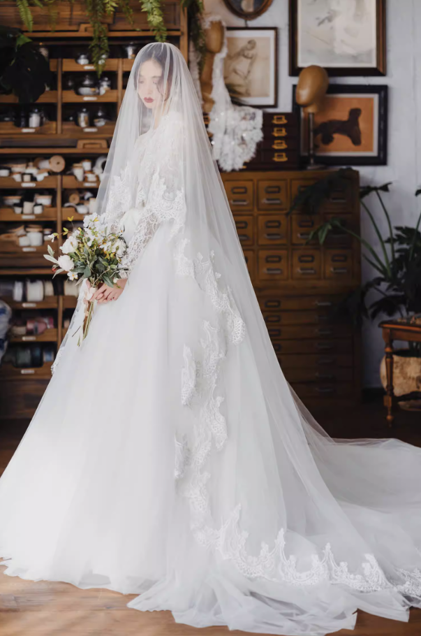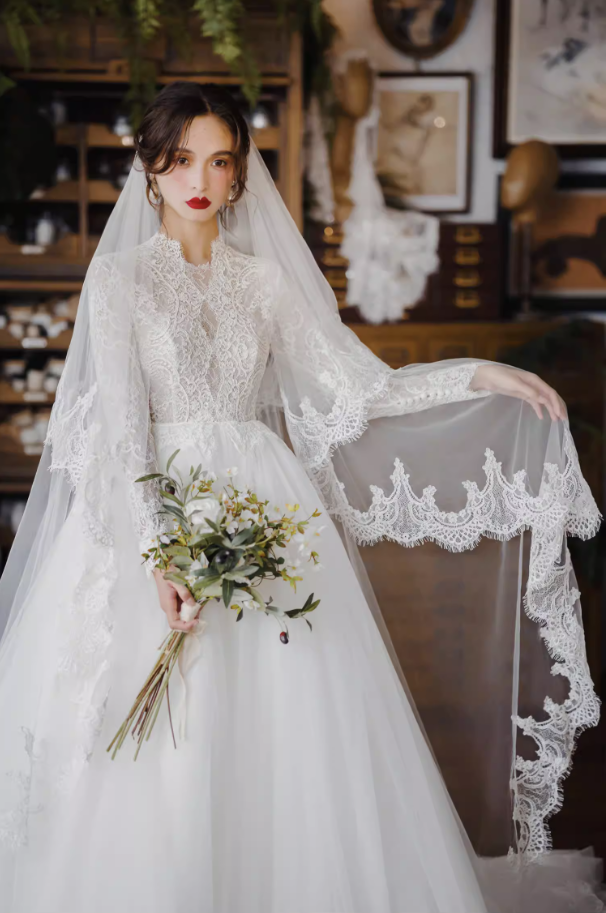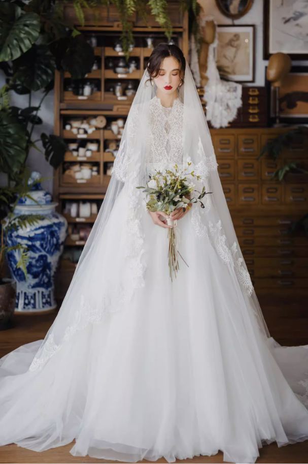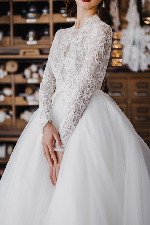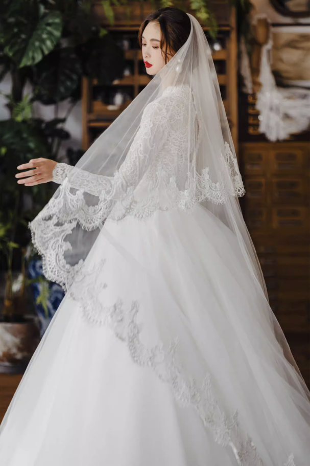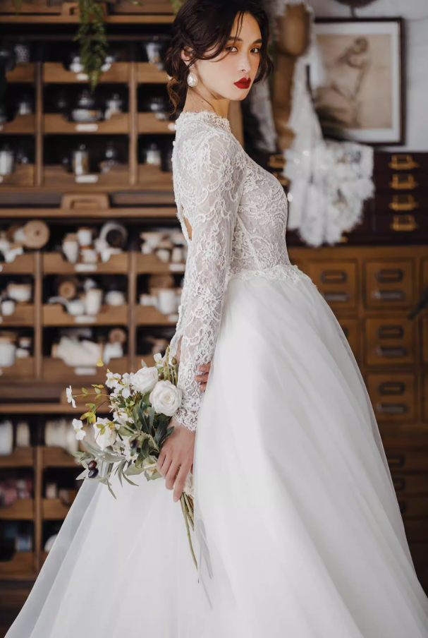 Váy cưới công chúa tay ren dáng bồng_I04