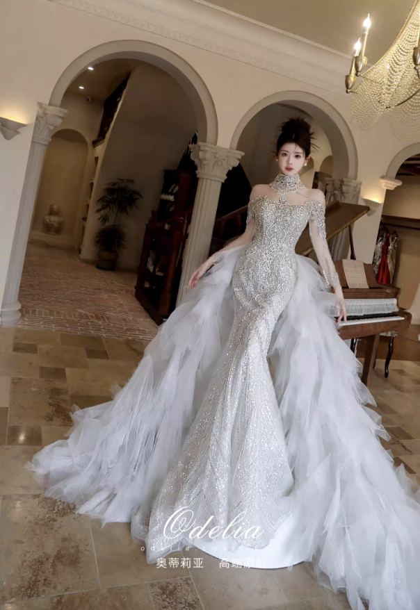 Thiết kế mang phong cách quý phái, phù hợp cho lễ cưới, chụp ảnh cưới hoặc tiệc sang trọng.
