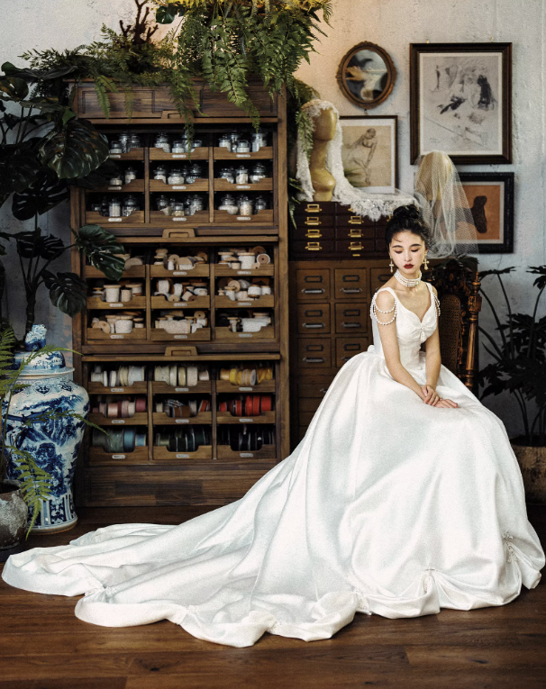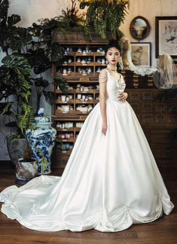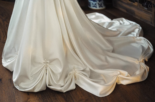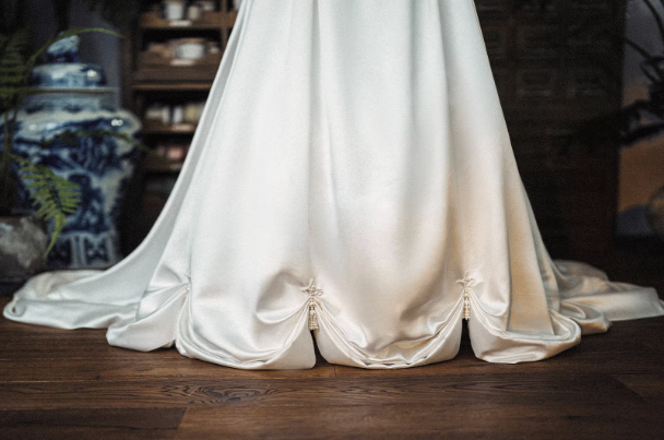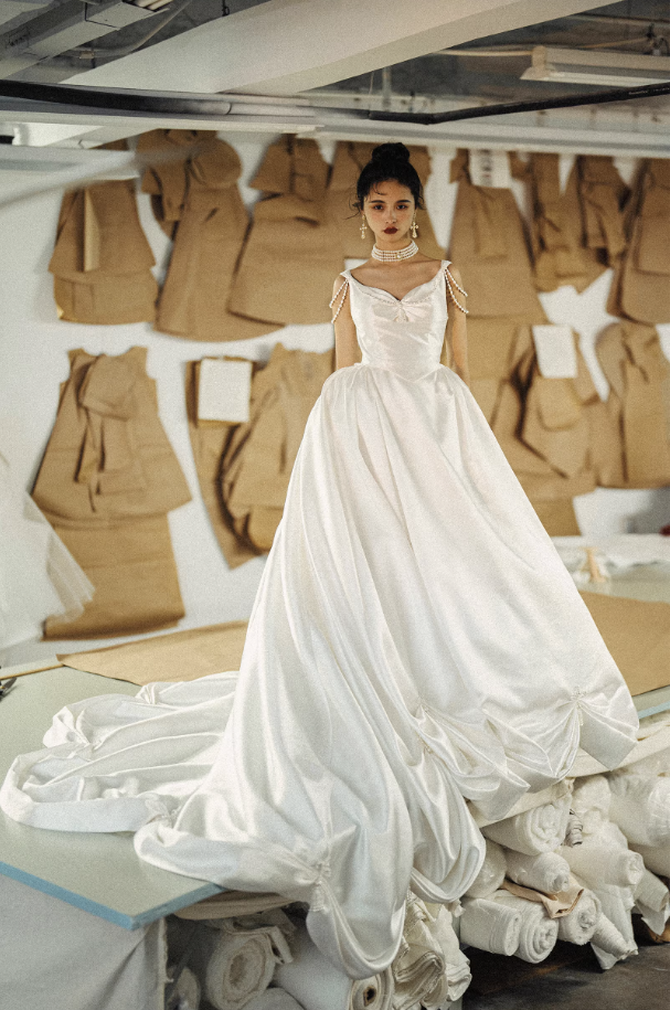 Chân váy dáng bồng rộng giúp tổng thể chiếc váy trở nên lộng lẫy và nổi bật, phù hợp cho lễ cưới, tiệc cưới hoặc chụp ảnh cưới theo phong cách cổ điển, sang trọng.