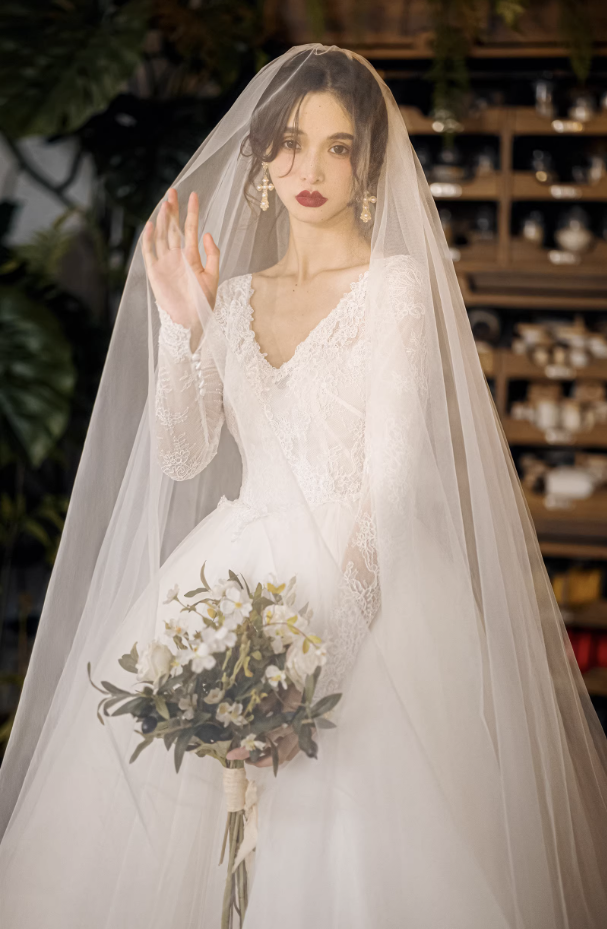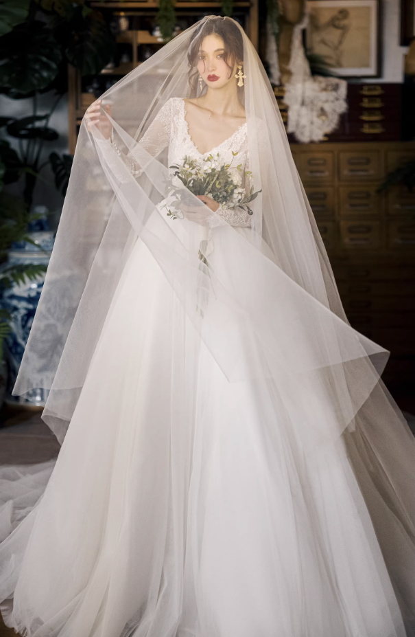 - Chất liệu: Ren cao cấp + nhiều lớp tulles mềm