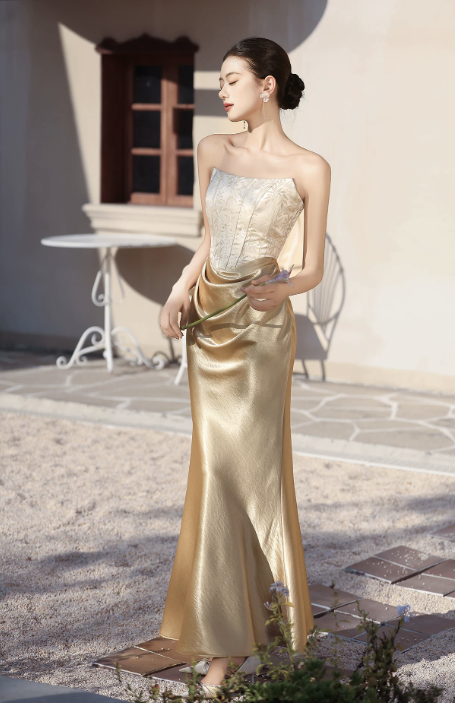 - Kiểu dáng: váy dài cúp ngực, dáng ôm