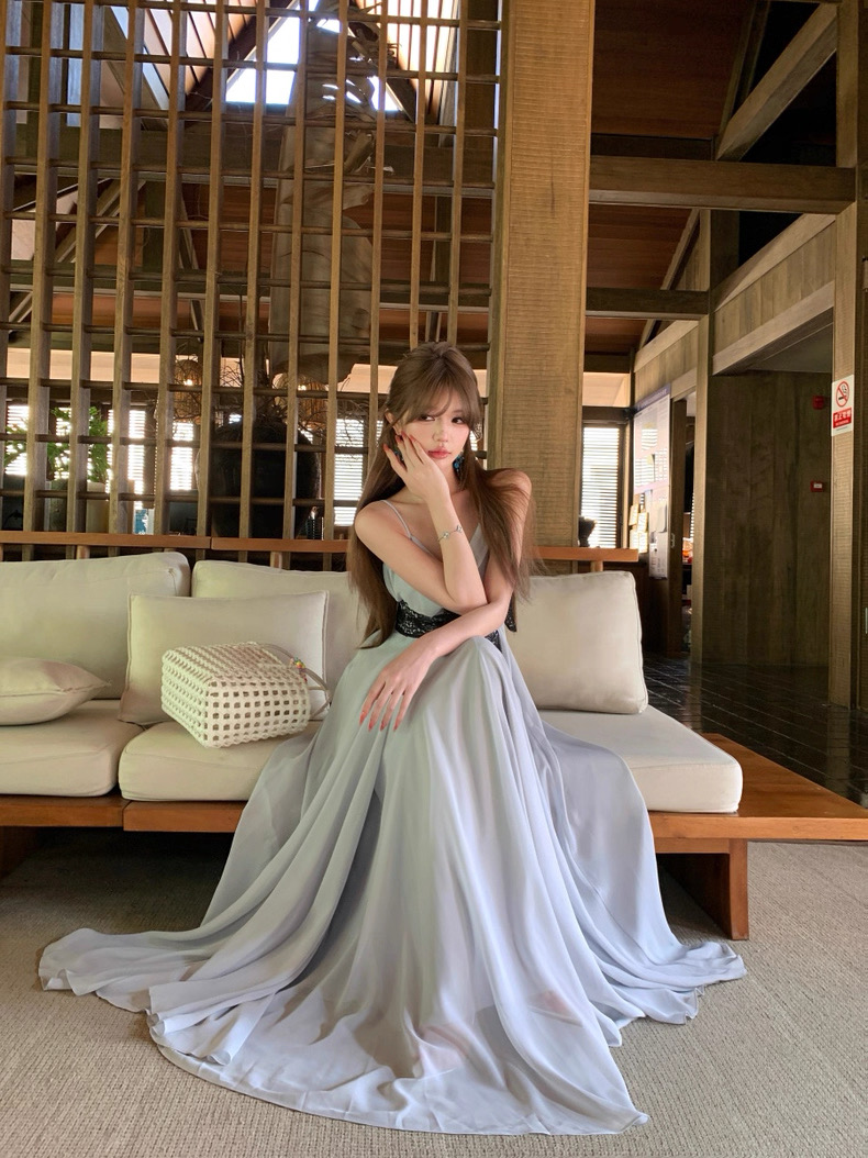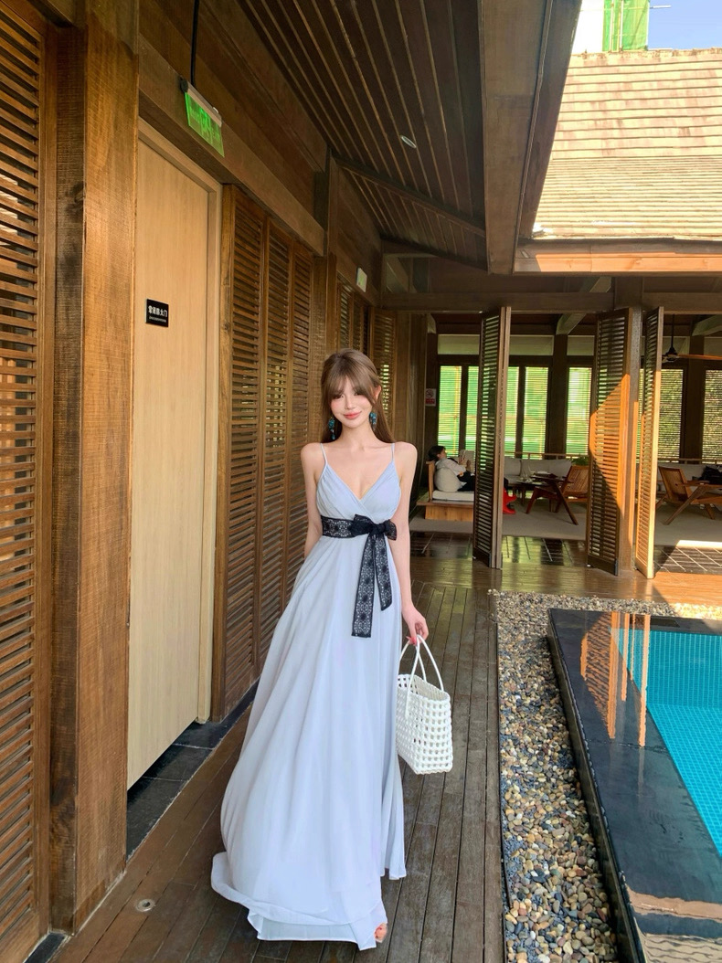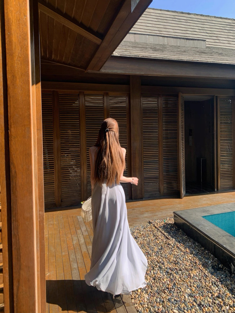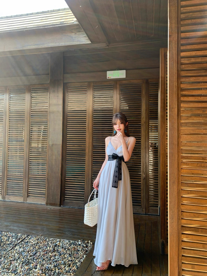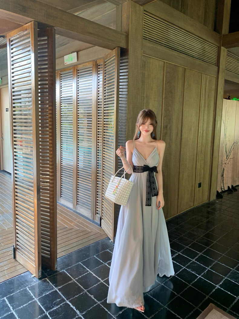 Váy dài 2 dây cổ V nữ tính nhẹ nhàng_Y12