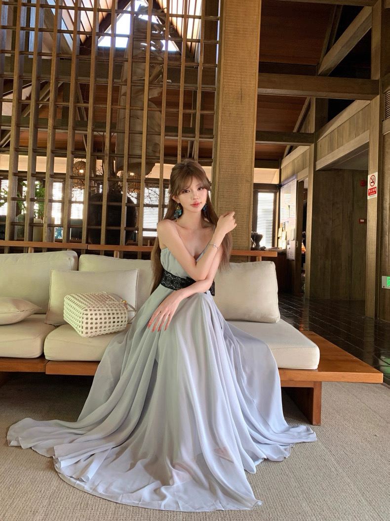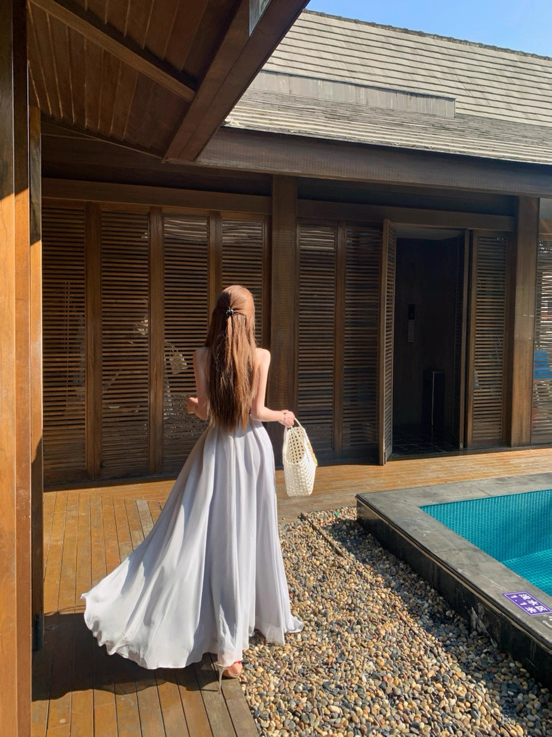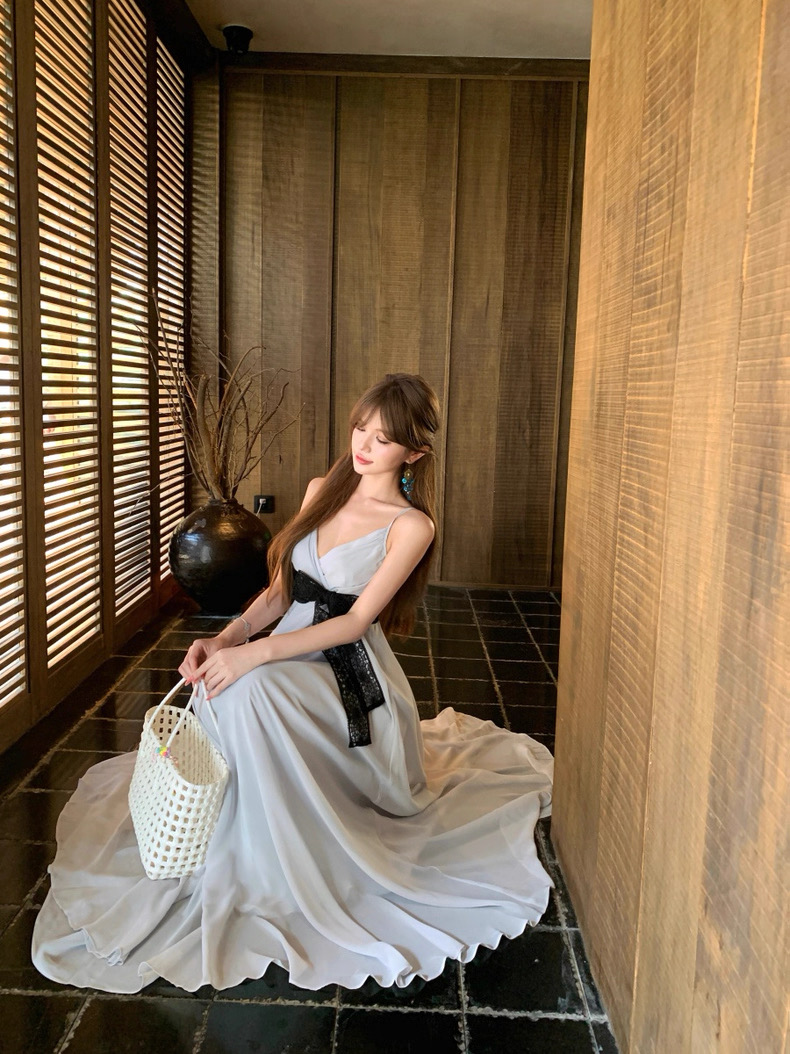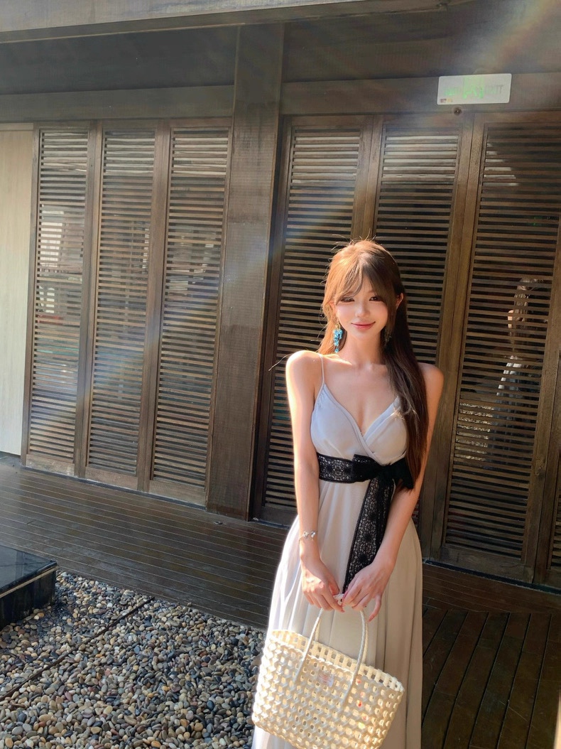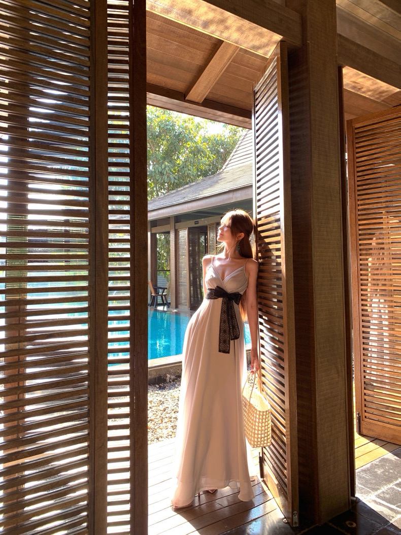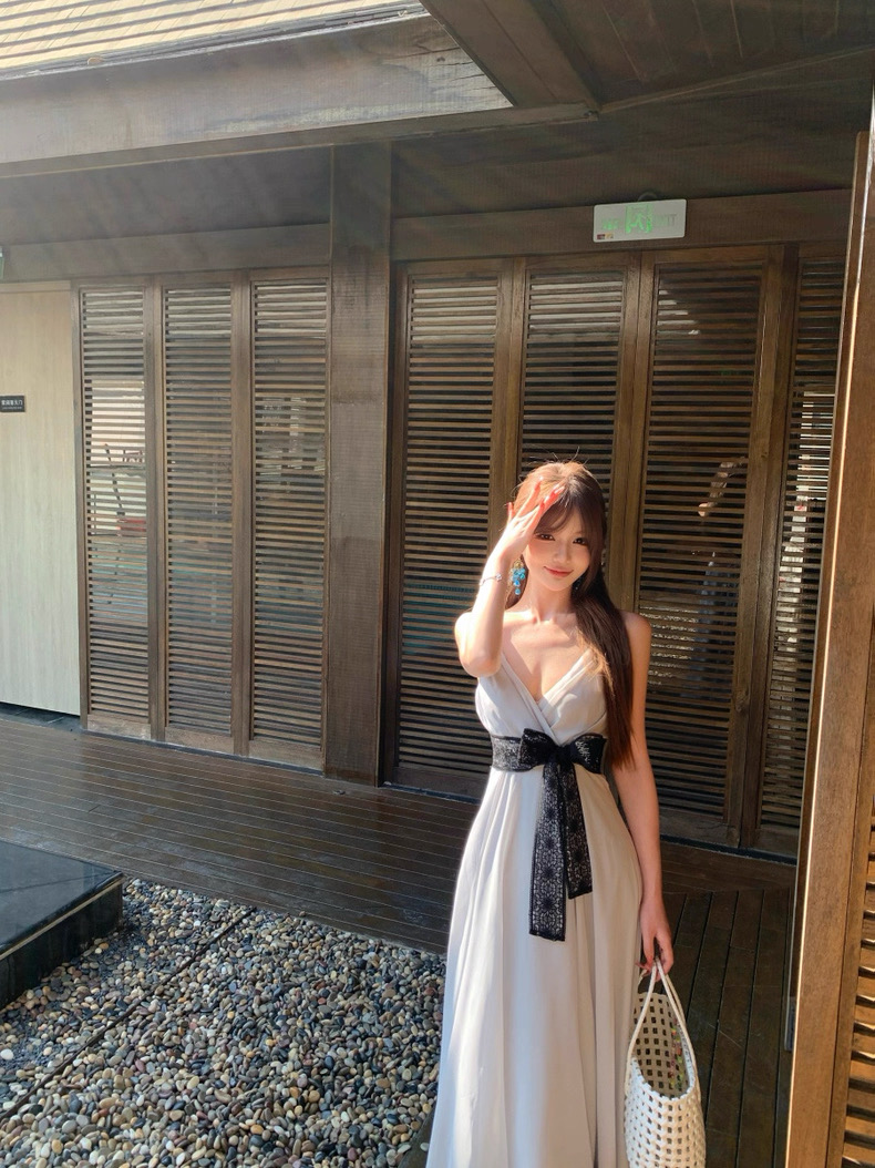 Váy dài 2 dây cổ V nữ tính nhẹ nhàng_Y12