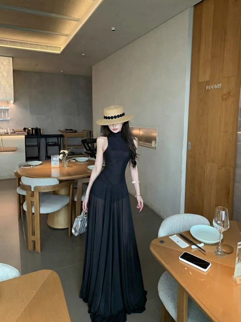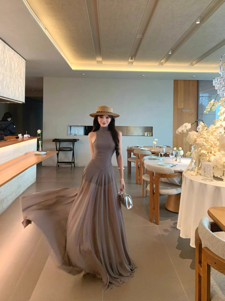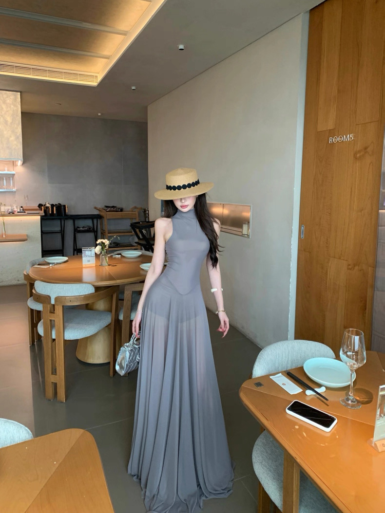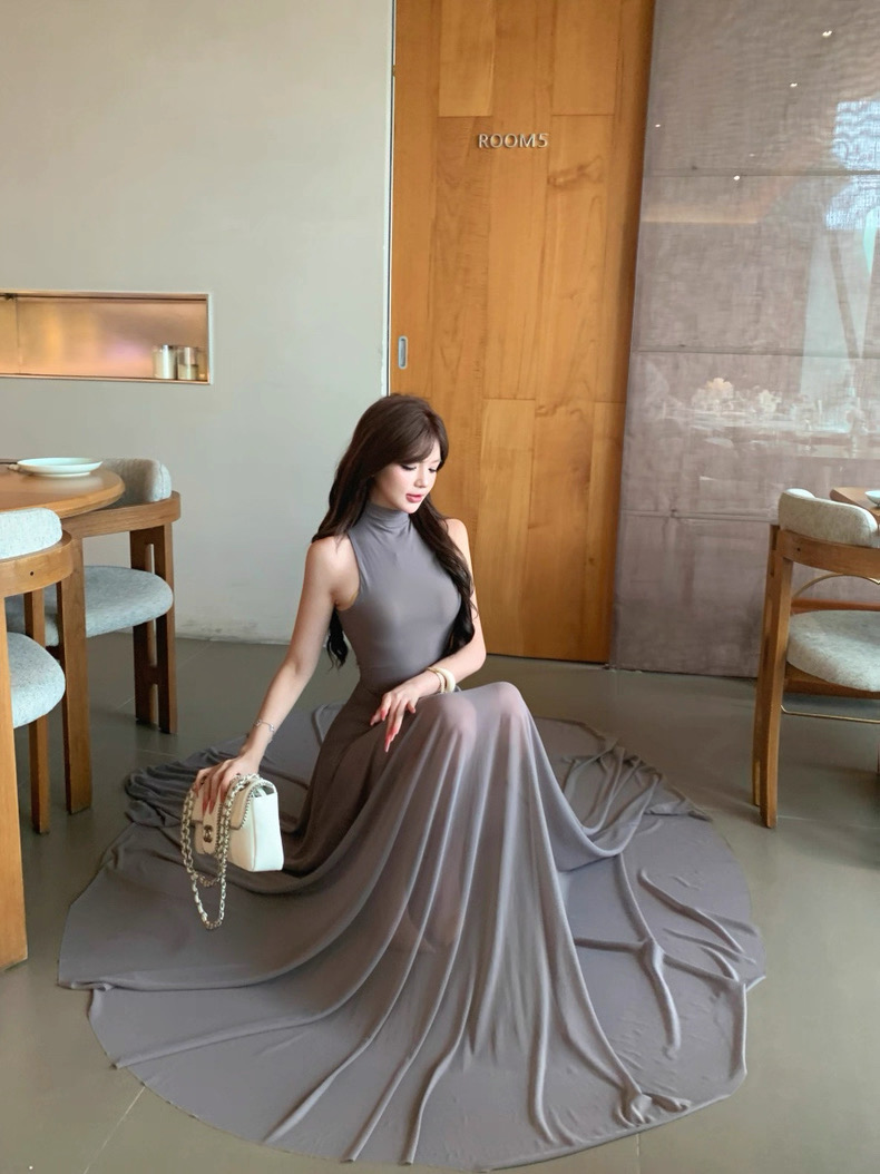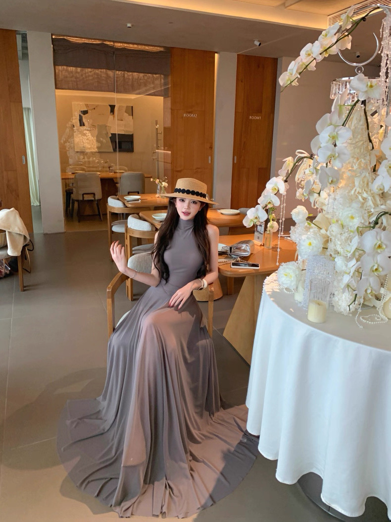 Váy dài dáng ôm cổ yếm xòe nhẹ thanh lịch_Y21