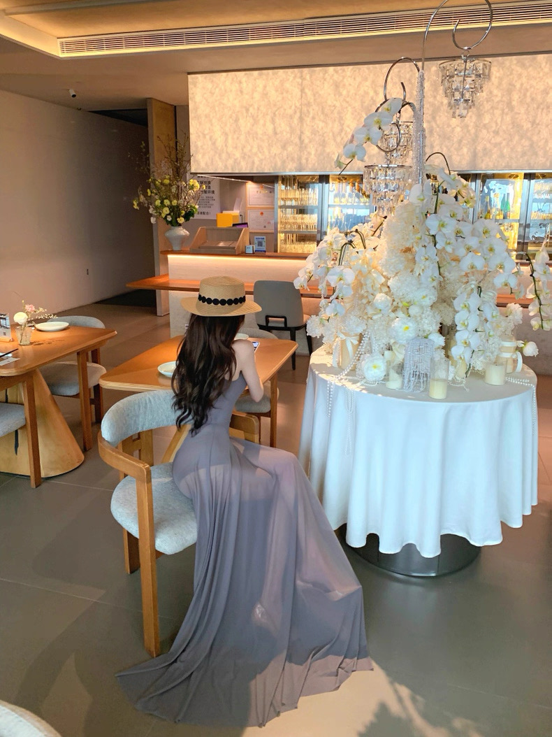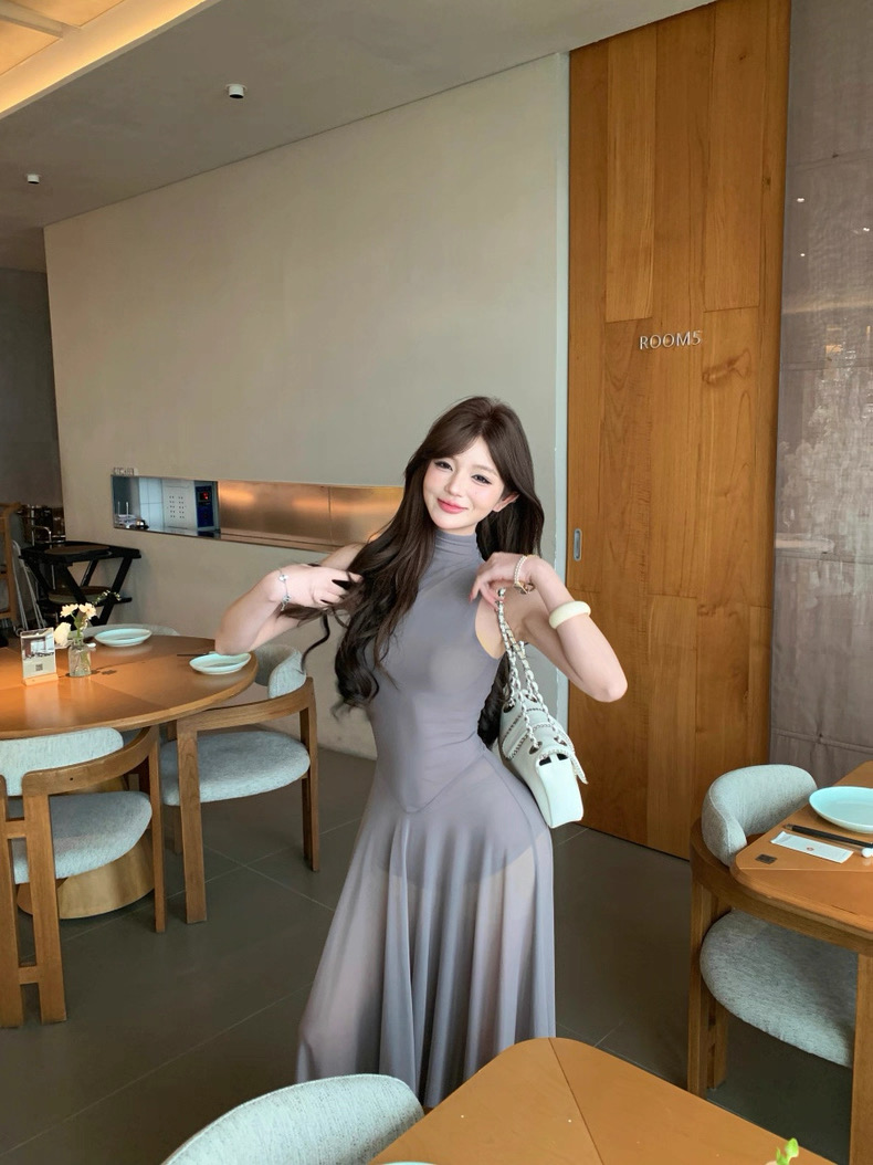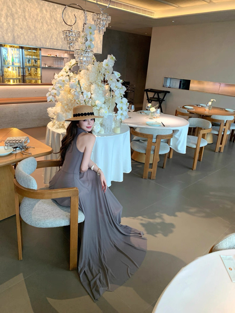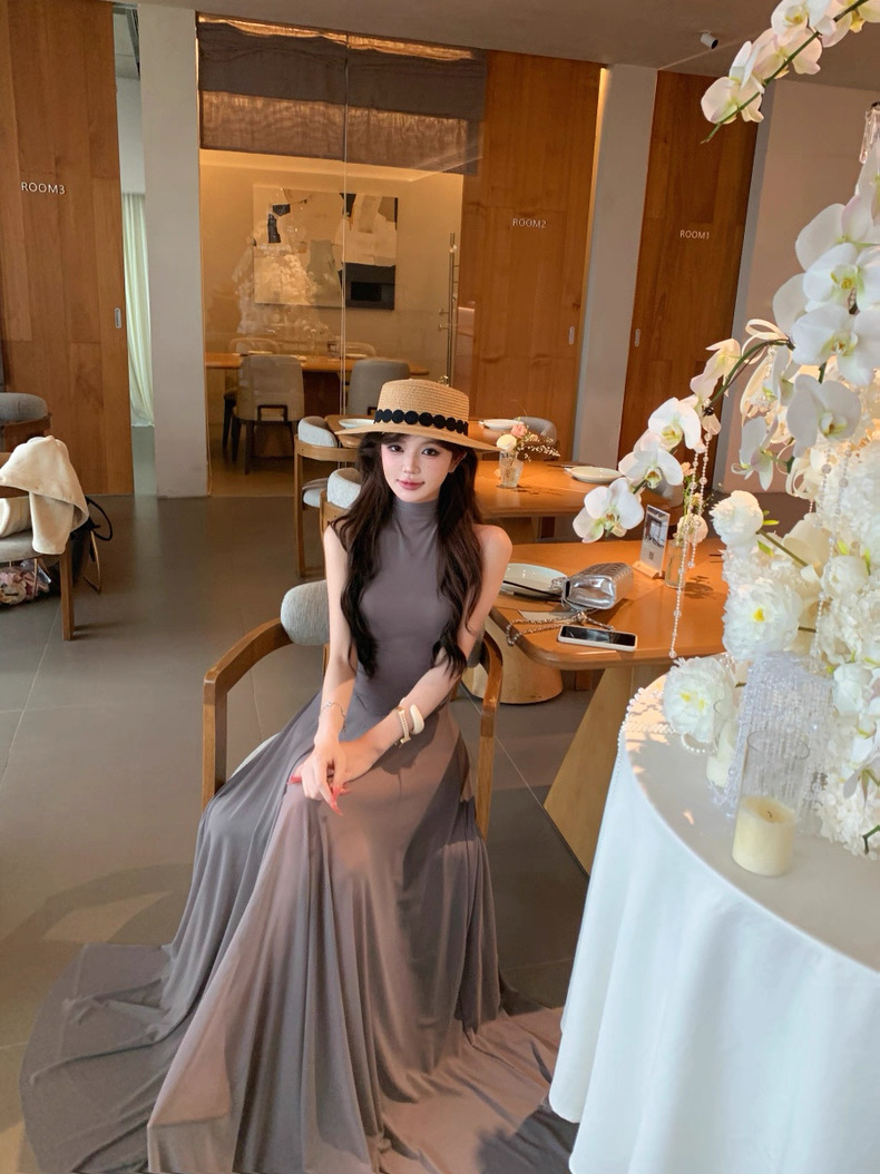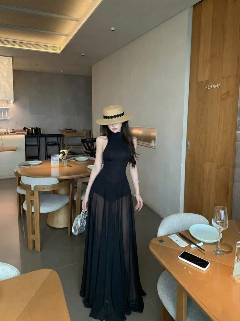 Váy dài dáng ôm cổ yếm xòe nhẹ thanh lịch_Y21