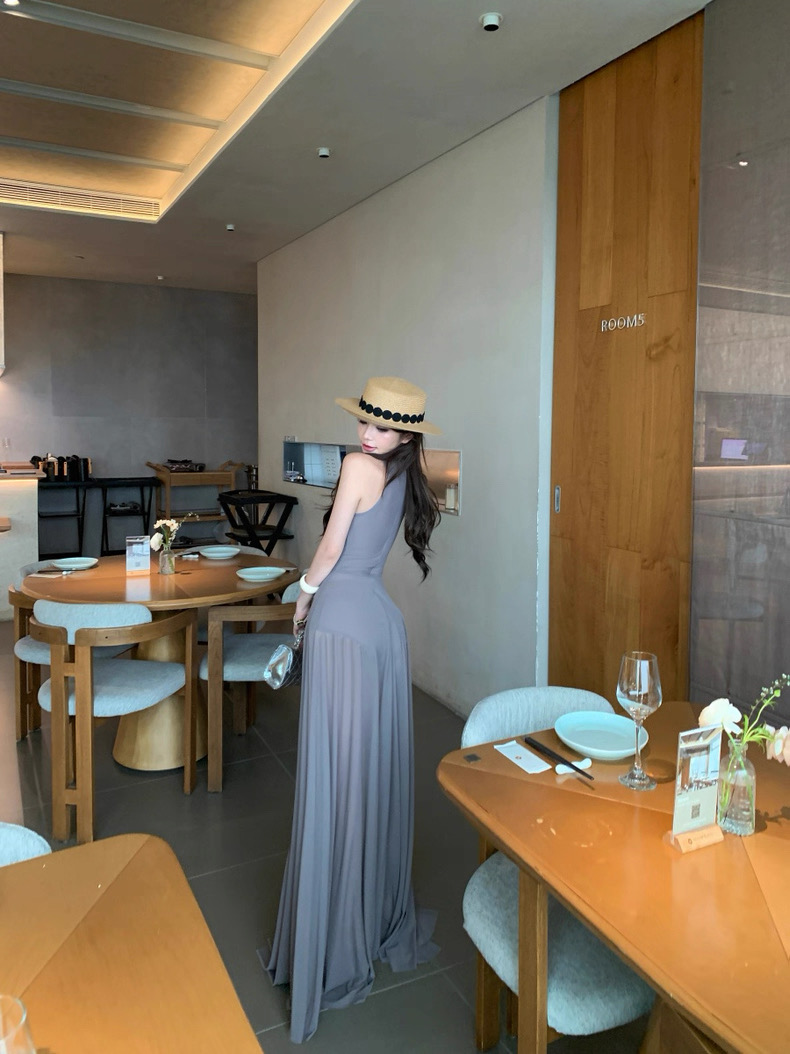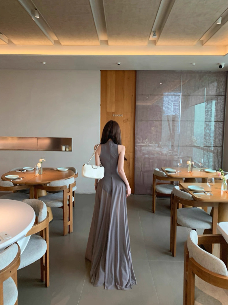 Váy dài dáng ôm cổ yếm thanh lịch, thiết kế tôn dáng với phần thân trên ôm sát giúp làm nổi bật vòng eo và...