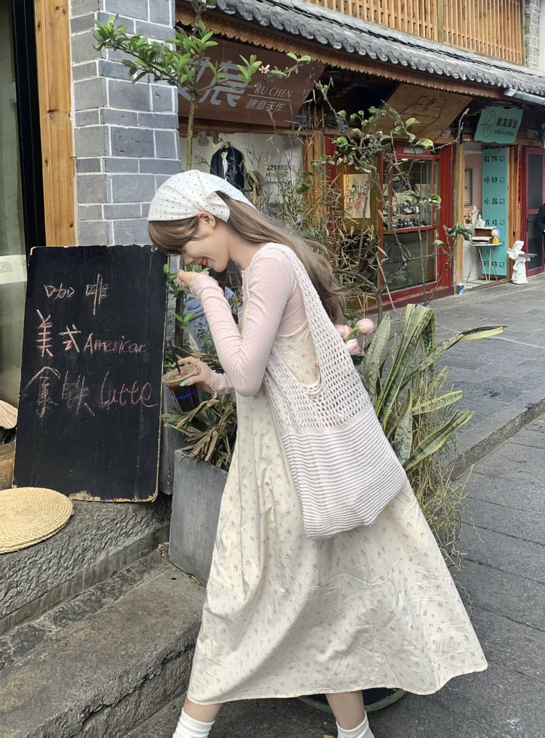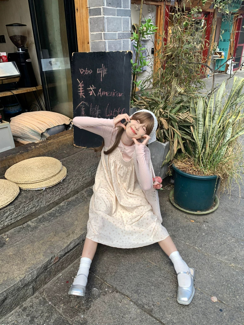 Váy hoa nhí vintage tiểu thư phối áo len mỏng_V07