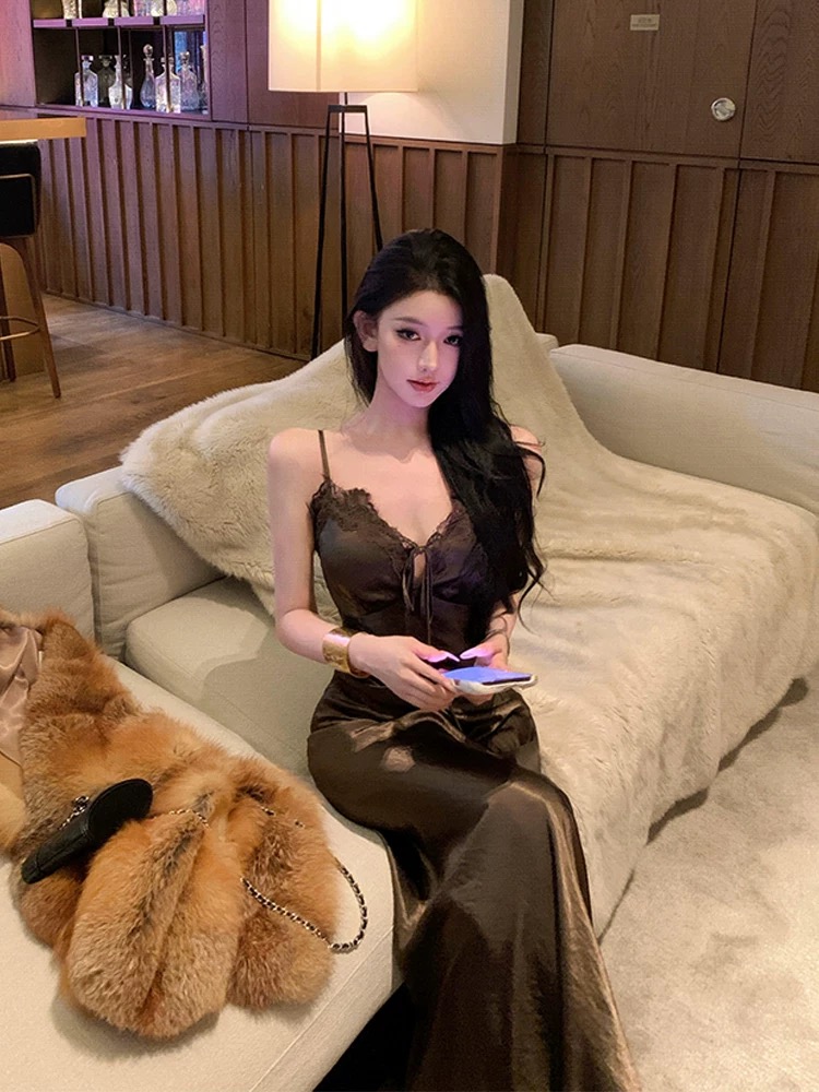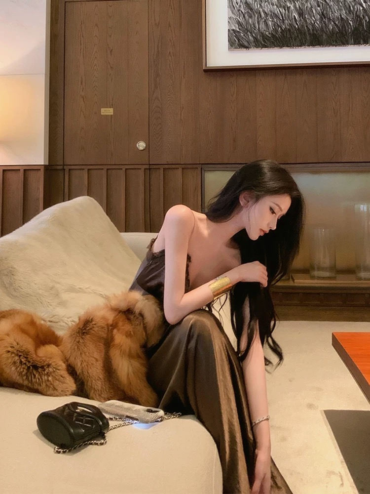 Váy hai dây dáng dài chất liệu lụa satin bóng nhẹ, thiết kế ôm body tôn dáng, mang lại vẻ ngoài sang trọng và quyến...