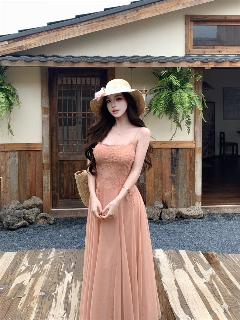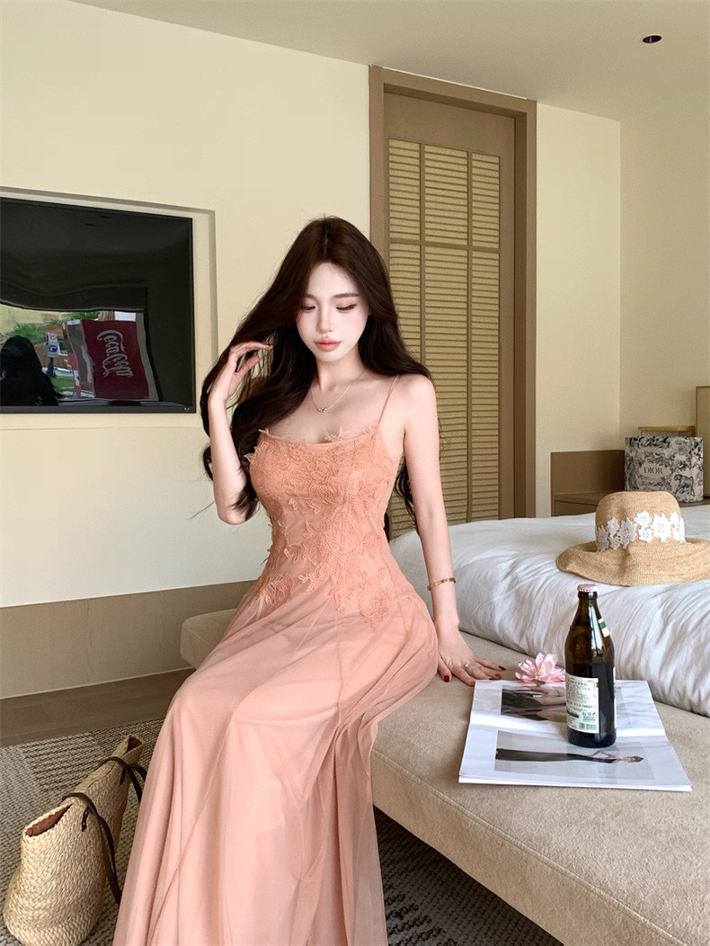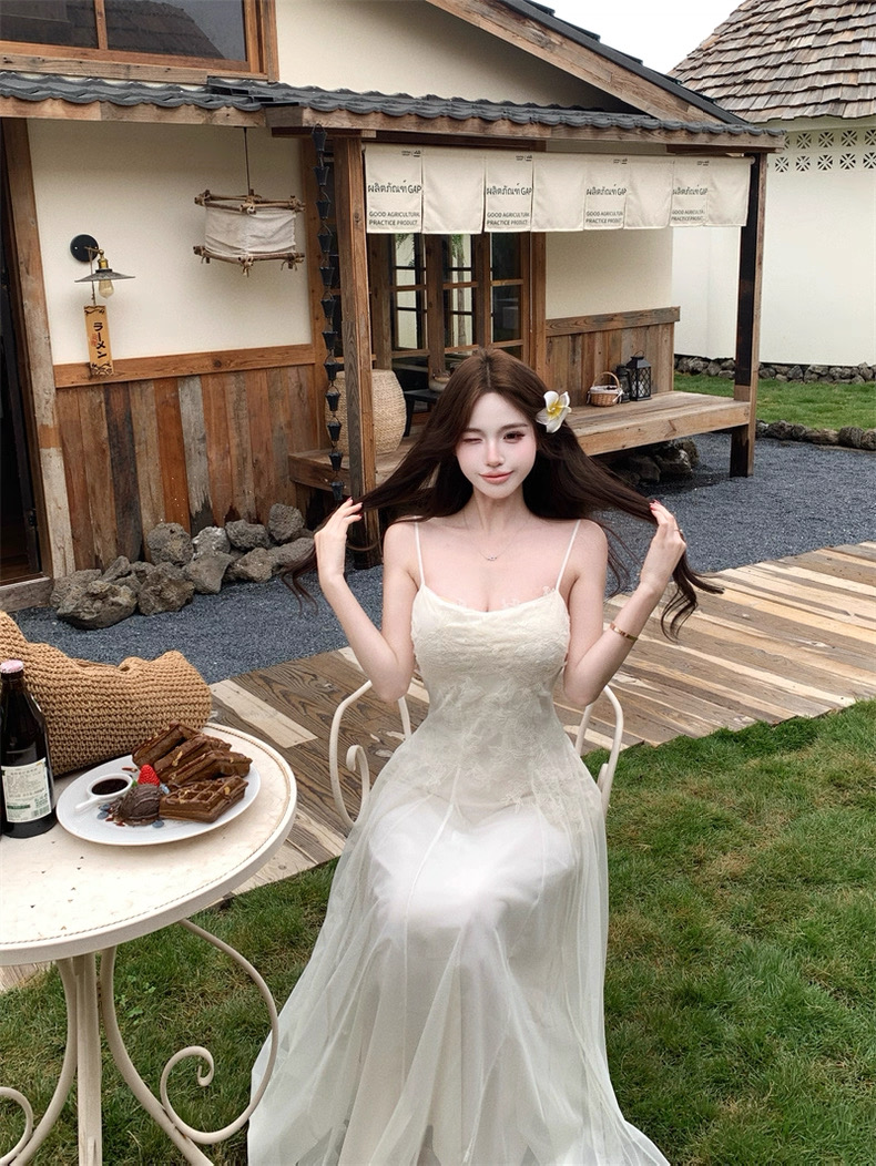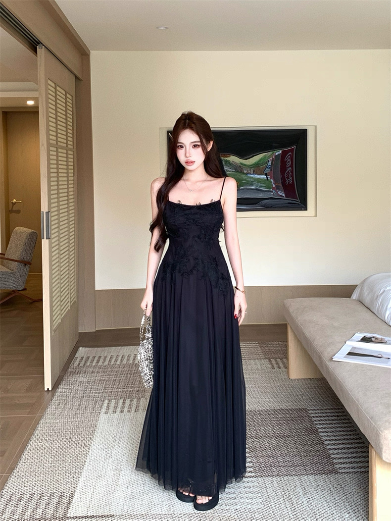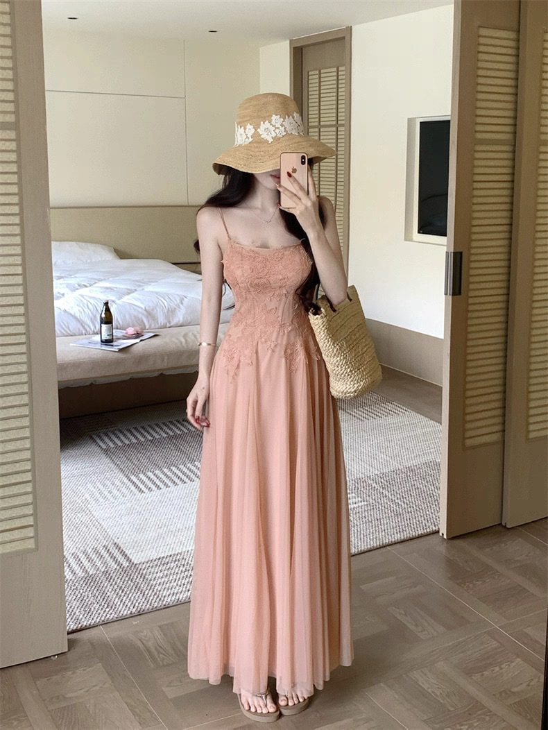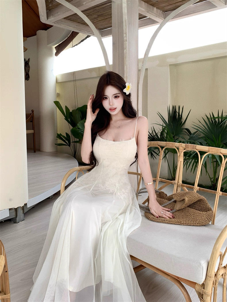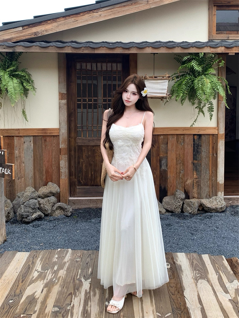 Váy maxi 2 dây dáng dài xòe ren voan thanh lịch nữ tính_Y16