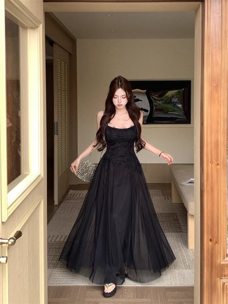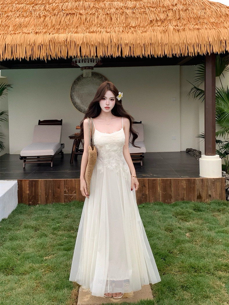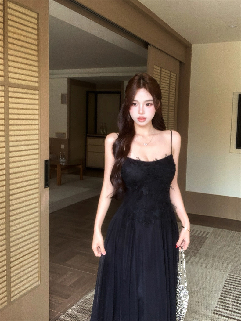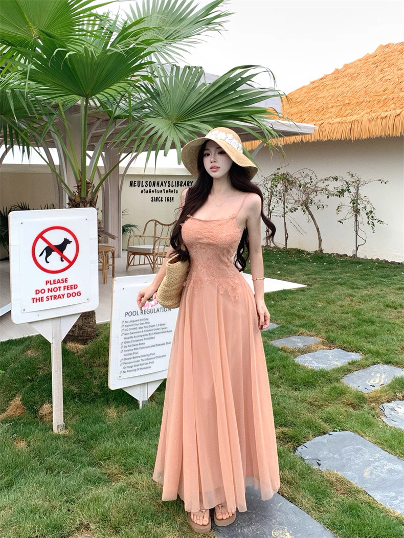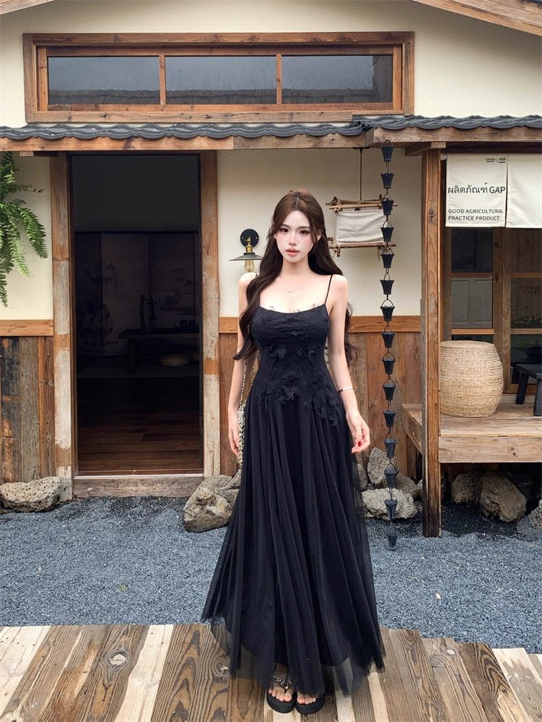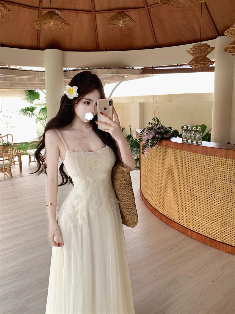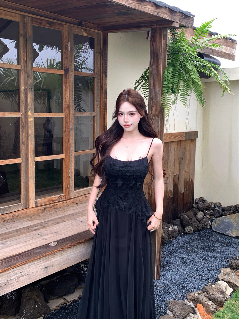Váy maxi 2 dây dáng dài xòe ren voan thanh lịch nữ tính_Y16