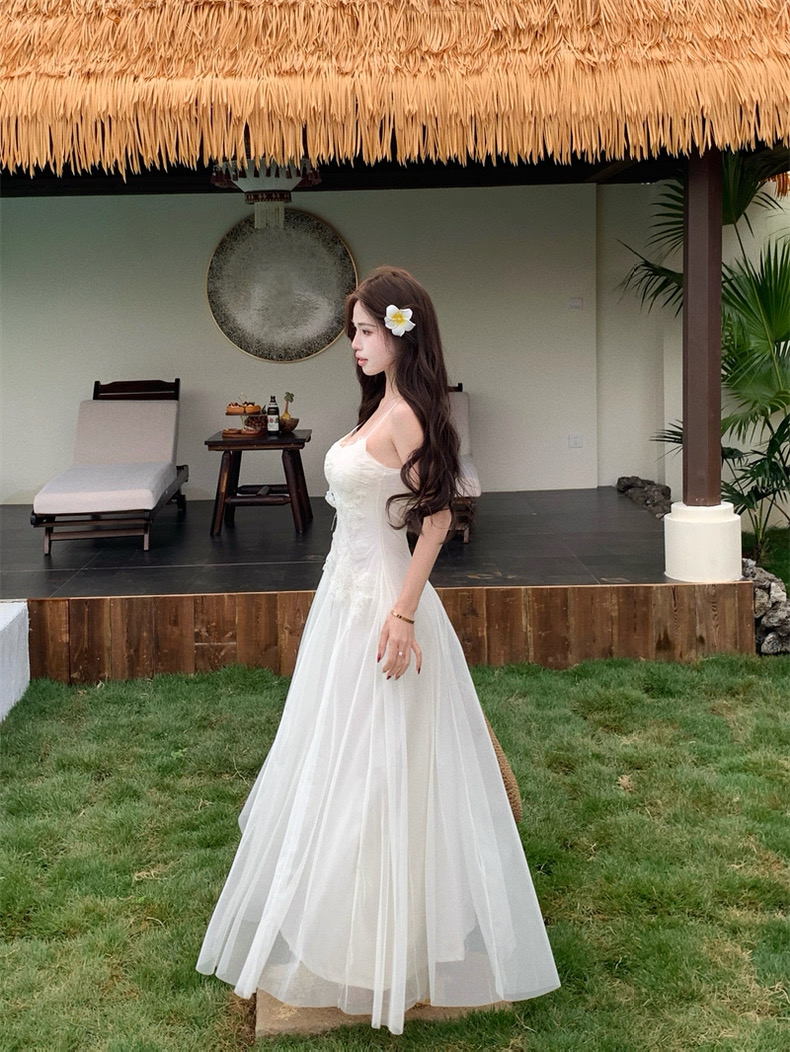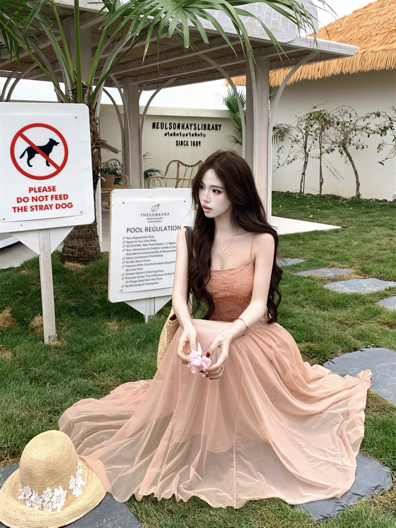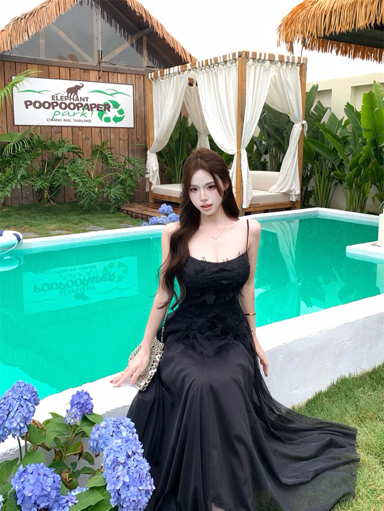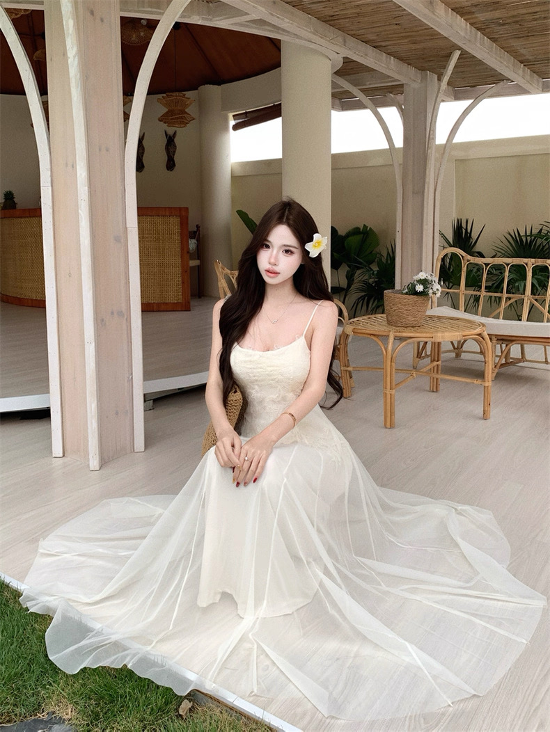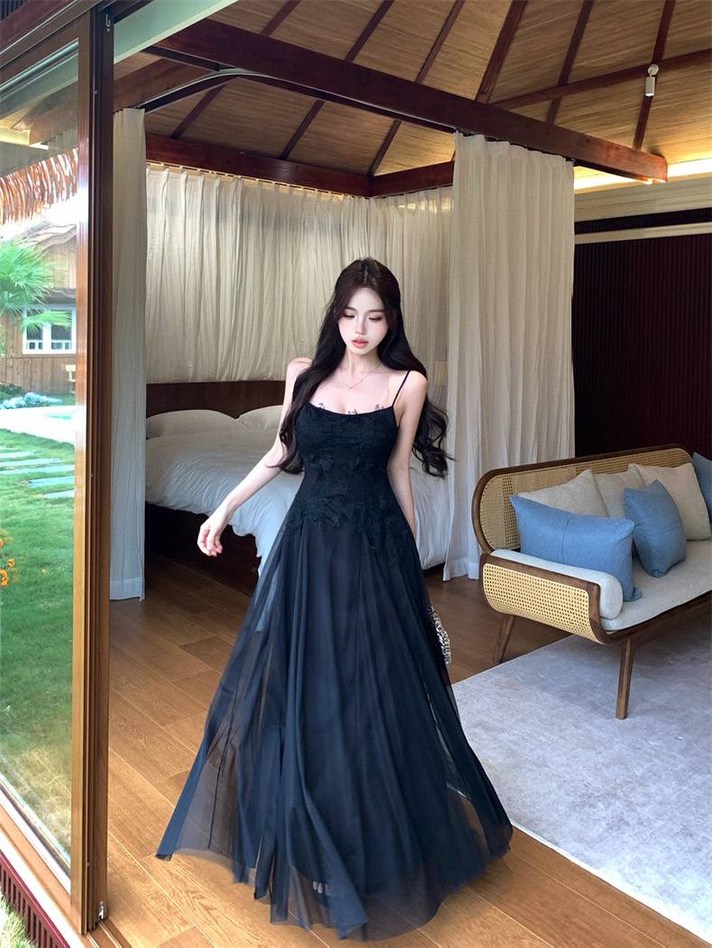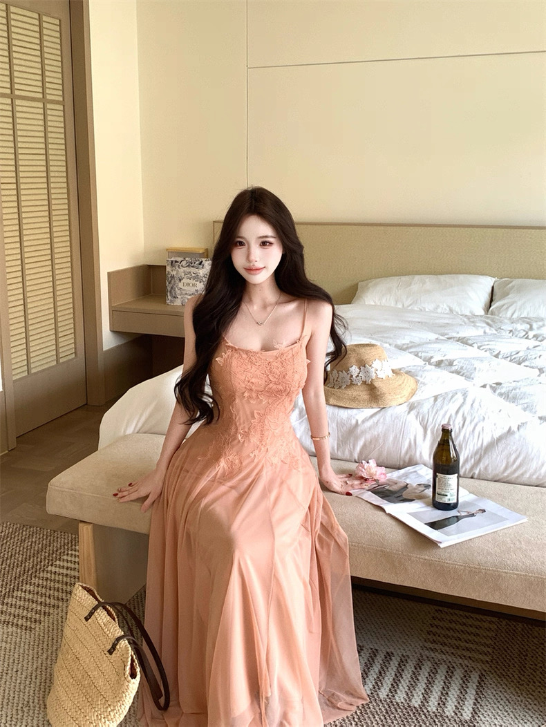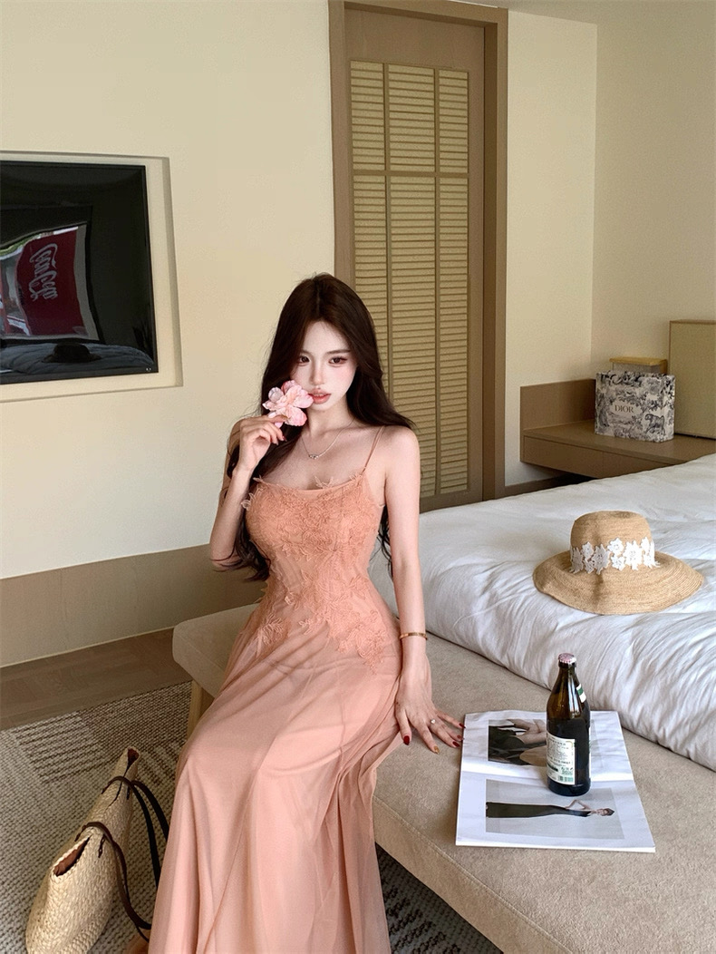 Váy maxi 2 dây dáng dài xòe ren voan thanh lịch nữ tính_Y16
