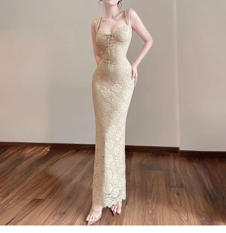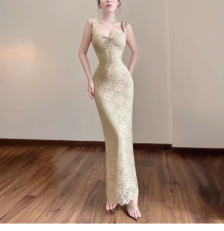 Váy ren dáng dài ôm sát tôn dáng cổ vuông_Y22